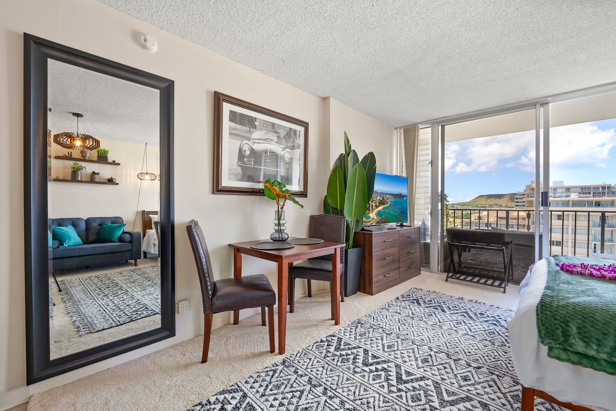 Waikiki Banyan will be renovating the recreation deck from April 7, 2025 through June 30, 2026. The renovation work is expected to be completed in April, ahead of schedule. The entire recreation deck will be inaccessible, including the pool, hot tubs, and barbecue grills. 1 Parking, FREE High-Speed WiFi internet Enjoy a fully-equipped kitchen and comfortable seating in the living room. Watch the surfers from the lanai in this high floor standard ocean view suite!