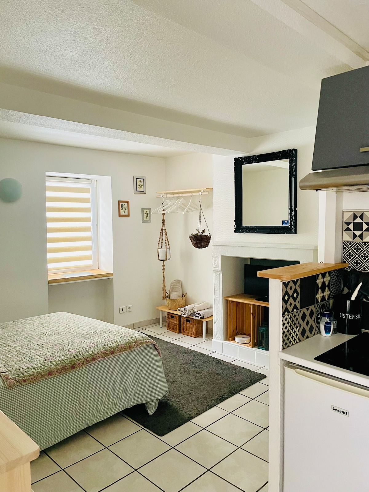 Le damos la bienvenida a nuestra habitación de huéspedes situada en la planta baja de nuestra casa . El precio incluye la noche y el desayuno compuesto por productos ecológicos o locales. Se proporcionan sábanas y toallas, la limpieza está asegurada por nosotros al final de la estancia. De septiembre a junio, ofrecemos una cesta de comida para 2 personas a 33 € (sopa casera, terrina de Auvernia, St Nectaire fermier, pan casero, vaso de queso blanco con frutas) + 6 € con una botella de Chateaugay.