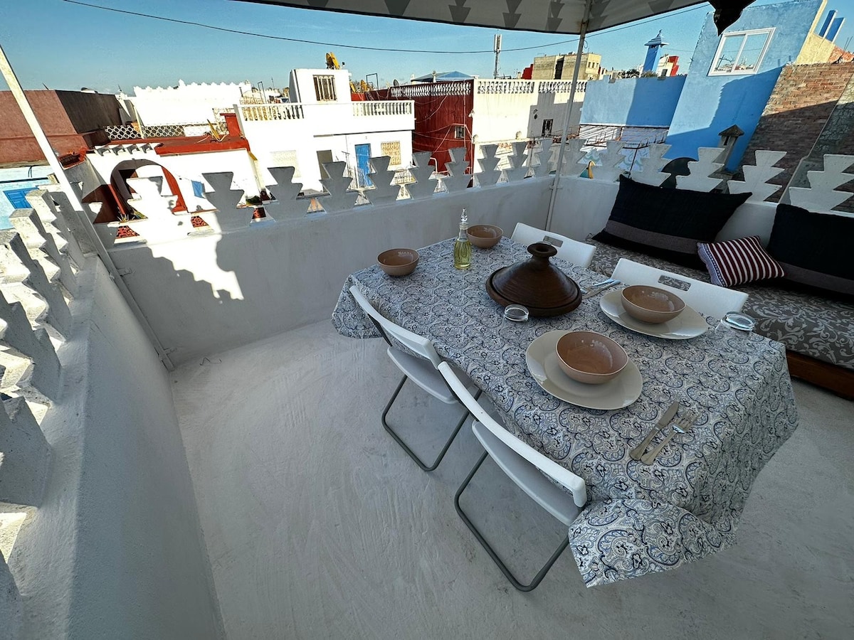 Este apartamento moderno tradicional en el corazón de la medina de Assilah está a solo 3 minutos a pie del mar. Cuenta con un cómodo dormitorio doble, dos sofás y una cocina totalmente equipada. Disfruta de wifi gratuito y aire acondicionado para una estancia agradable. Este lugar especial está cerca de todo, por lo que es fácil planificar tu visita. Si quieres desayunar durante tu estancia, se puede proporcionar por una tarifa adicional de € 5 por persona. También para cualquier otra comida 👂requerimos acta de matrimonio para pareja marroquí