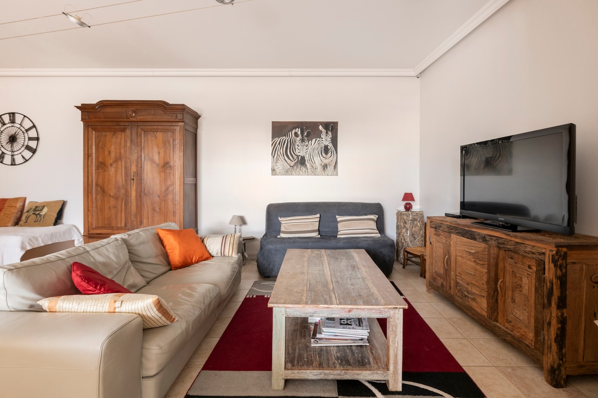 Bienvenido a nuestra casa adosada, situada en el corazón de un campo tranquilo. Este acogedor estudio le ofrece una cocina abierta a una sala de estar luminosa, una cama modular según sus deseos, un baño y un aseo independiente. Disfrute de un exterior para disfrutar de la tranquilidad y de un espacio de estacionamiento gratuito. Aquí todo está pensado para su bienestar.