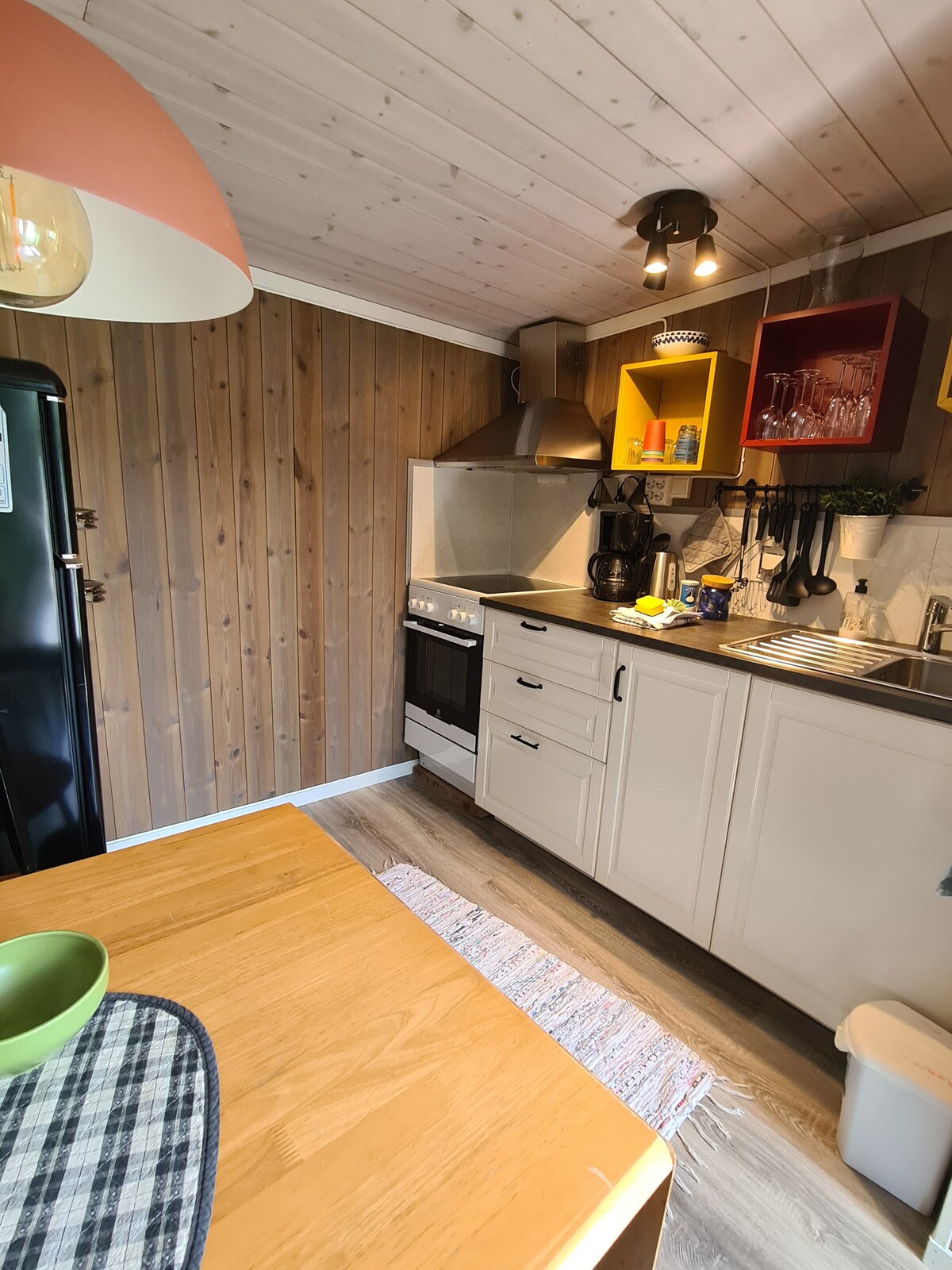 ¡Bienvenido a la granja Freberg en Sandefjord! Aquí puede recoger huevos de las gallinas, no dude en pedir nuestro desayuno con miel y mermelada de la granja (75 NOK/persona). Parque infantil para niños, experiencias en la granja para grandes y pequeños, y es un buen punto de partida para excursiones en Vestfold. Cabaña de madera de 2 plantas con baño con inodoro y ducha, salón/cocina abierta con estufa, nevera, 2 dormitorios en la 2ª planta y 2 dormitorios en la 1ª planta. A poca distancia de la playa, bonitas rutas de senderismo, Gokstadhaugen, a solo 3 km del centro de Sandefjord.