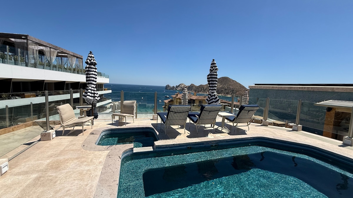 Penthouse de lujo con impresionantes vistas de Cabo San Lucas. Este moderno hogar de 2 recámaras y 2.5 baños cuenta con cocina totalmente equipada y todo lo necesario para una estancia cómoda. Ubicado a solo 5 minutos del centro y de la vibrante vida nocturna de Cabo. Disfruta de tu rooftop privado con jacuzzi y asador, perfecto para relajarte o para organizar reuniones de hasta 20 invitados. Pregunta por nuestros servicios de concierge para vivir una experiencia verdaderamente inolvidable.