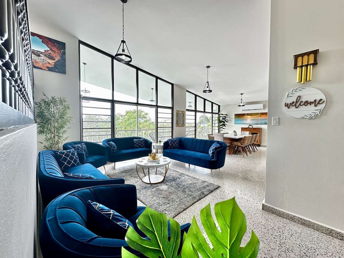 Encantadora casa de playa para familias y amigos ubicada en Sea Beach Colony, a 1 casa de la playa. 3 dormitorios y un loft, nuestra playa familiar es la casa perfecta para los amantes del mar, aire acondicionado y wifi en el corazón de Rincón. La zona lo es todo, disfruta de increíbles vistas al mar desde todas las habitaciones y la terraza. Espacio abierto con cocina, sala de estar y comedor, cuenta con techos altos, increíble vida al aire libre, a poca distancia a pie de restaurantes y tiendas del centro de la ciudad. ¡Sillas de playa y kayaks incluidos!