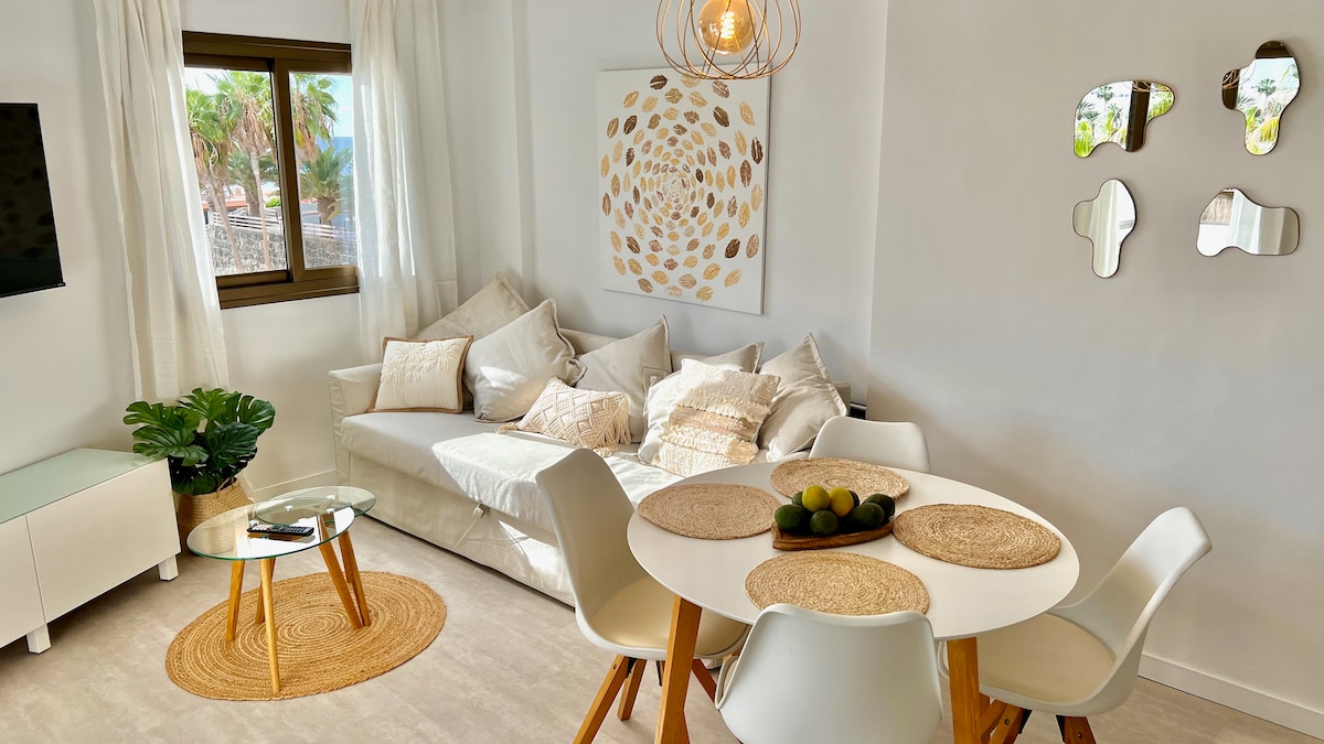 A pocos pasos de la playa, apartamento reformado, luminoso y totalmente equipado. Con buena orientación, es amplio, fresco y cómodo para estancias largas. Tiene terraza con vistas a la piscina, dos camas tipo hotel de 1 x 2 m, sofá cama, cocina con horno y microondas, wifi y dos Smart TV. Complejo con piscina, jardín y parking, cerca del C.C. Kasbah, Yumbo y Águila Roja, supermercados y buenas conexiones en bus y taxi. Ideal para caminar junto al mar, nadar, tomar el sol y explorar la isla.