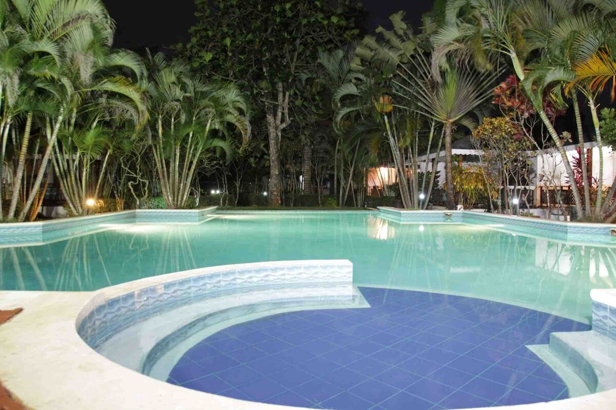 Escápate al paraíso! Hospédate en este bungalow colonial independiente rodeado de un hermoso jardín tropical , a pocos minutos de la playa. Relájate con aire acondicionado, cama King, wifi, Netflix y seguridad nocturna. A pasos de tiendas, bares y restaurantes. Renta todo tipo de vehículos y explora con libertad este paraíso. Disfruta una cena gourmet con paella valenciana (previa reserva). Atención personalizada en español, inglés y francés. ¡Privacidad, confort y ubicación perfecta te esperan!