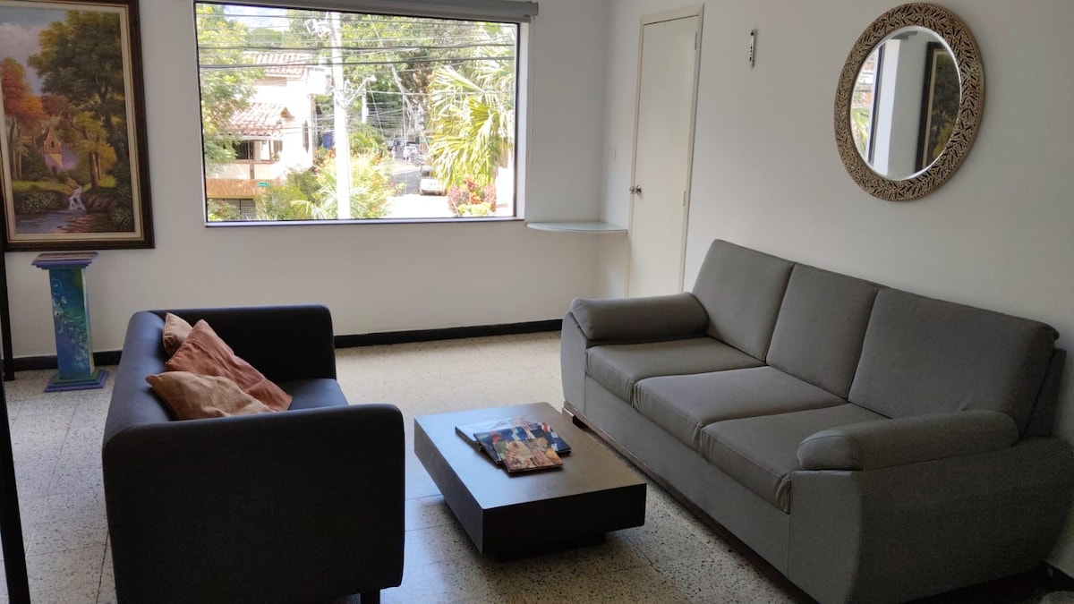 Apartamento localizado en zona céntrica de la ciudad, segura y tranquila. Esta cerca de vías principales, supermercados y de la Carrera 70 donde podrás encontrar buenos restaurantes y centros nocturnos cerca. Fácil acceso a rutas de transporte publico. Apto de 2 niveles Comodidades: • Habitación: • Cama King • TV con Netflix • Area de trabajo • Baño con agua caliente • Cocina completamente equipada con nevera • Zona de ropas con lavadora • Wifi 350Mb • Sofacama • Balcón
