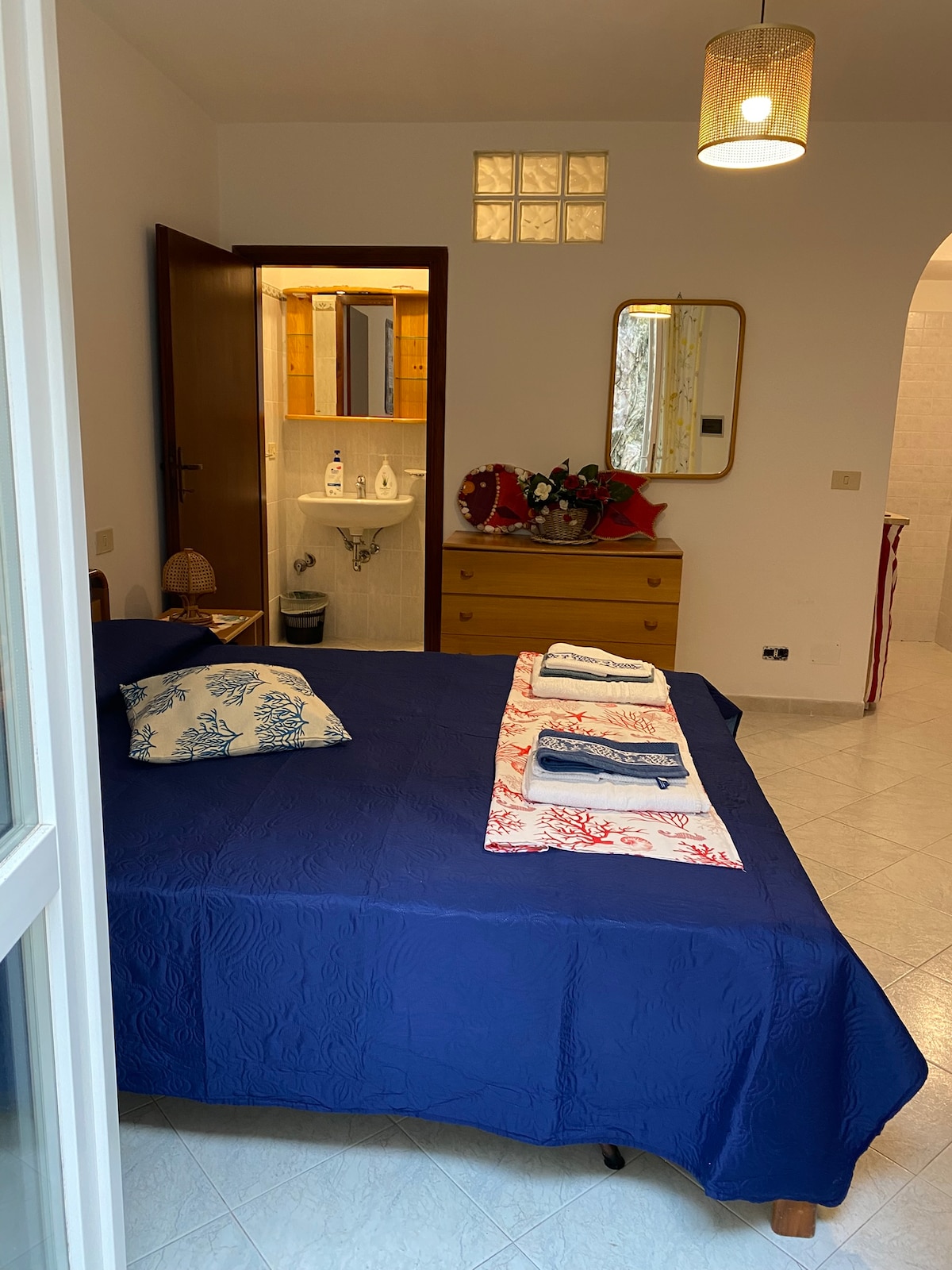 Apartamento equipado con dos habitaciones tamaño queen,un baño,cocina y sala de estar. Terraza con vistas al mar. Zona de tumbonas con ducha también en el exterior. Situado en el centro de la isla, en la zona de Le Forna. Fácilmente accesible en autobús. Llegue al puerto,tome cualquier autobús a Le Forna,bájese en Via Sottocampo,cruce la carretera y camine por la carretera. A unos 300 m (2 minutos) a la izquierda encontrará una puerta de madera. ¡¡Siete en casa!!