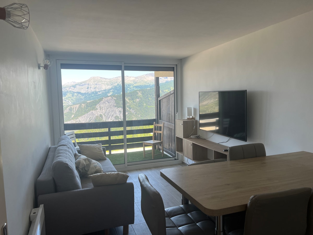 Beau studio de 28m2 refait à neuf en cœur de station. Les remontées mécaniques se trouvent à 250 mètres. 4 couchages : un lit mural escamotable de 140x200 et deux lits superposés de 80x190, avec couettes et oreillers. La cuisine est totalement équipée et neuve. Vous trouverez également un beau balcon avec son mobilier d’extérieur, idéal pour profiter des belles journées ensoleillées que ce soit en été ou en hiver. L’appartement dispose également de l’accès au WIFI et d’une télévision.