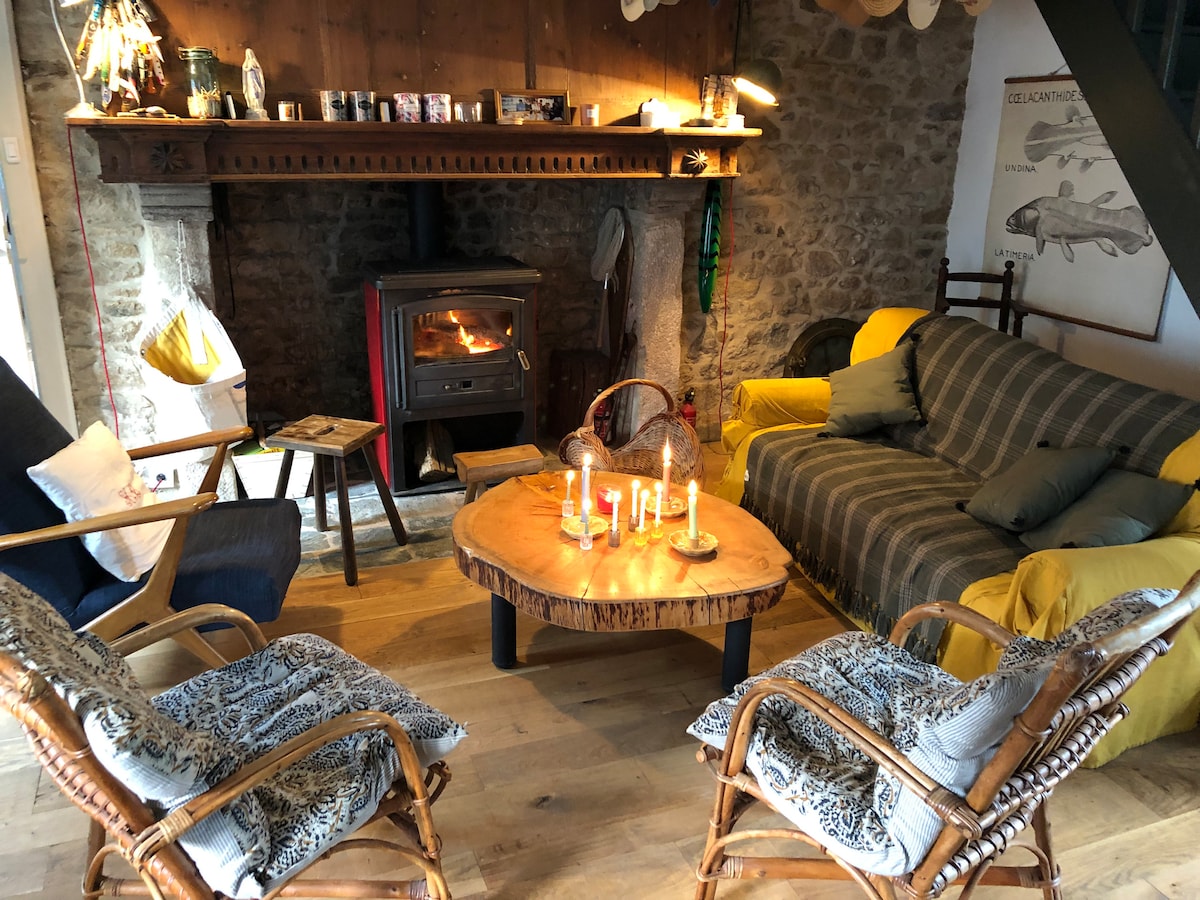 Casa de vacaciones aislada frente al mar, en la "pequeña Irlanda". En su jugo, está en proceso de mejora. Idealmente ubicado en el GR223. Contemplativo o deportivo, esta casa entre la tierra y el mar es para usted. 3 dormitorios, una sala de estar/cocina frente al mar y un capullo donde refugiarse cuando la naturaleza está demasiado presente! También una terraza y un jardín. La casa tiene vistas a la playa de guijarros y arena (durante la marea baja). cf ecalgrain point com