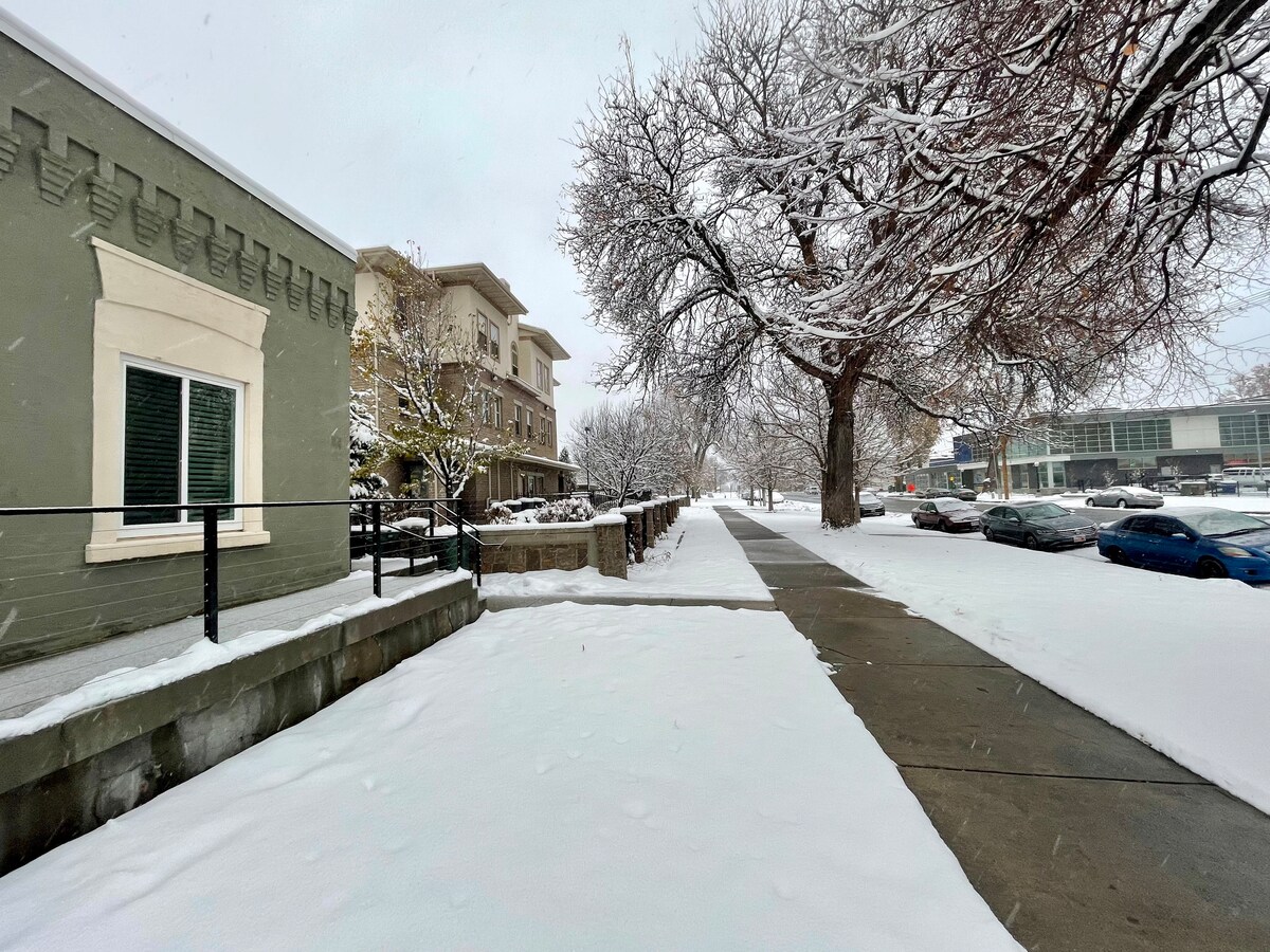 Ven a vivir una parte de la historia mientras te acomodas en la primera iglesia y escuela mormona en South Salt Lake. Construida en 1880 y restaurada en 2011, disfruta de todo el encanto antiguo con lujo nuevo y de alta gama. Cerca de la I-15/aeropuerto de SLC/centro de la ciudad a 25/ESQUI a 30/Provo a 30 minutos o menos. WIFI RÁPIDO, ROKU, ladrillo y vigas a la vista, acabados detallados, suelos de madera, ducha de mármol, edredón de plumas, cocina americana con electrodomésticos de alta gama. La avena y el café para el desayuno se almacenan en la cocina y se incluyen con tu estancia.
