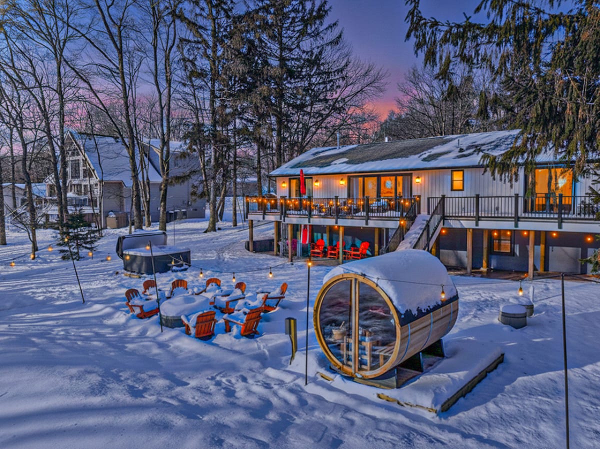 Serenity chalet está en una ubicación tranquila del lago Arrowhead. ¡Disfruta de acceso ilimitado a 3 piscinas climatizadas, 2 lagos abastecidos, 4 playas, una casa club con gimnasio y billar, y canchas de pickleball al aire libre! Con una ubicación céntrica, encontrarás parques estatales, estaciones de esquí, campos de golf, restaurantes, parques acuáticos, casinos, tiendas, la ciudad histórica de Jim Thorpe, todo a 10-30 minutos en coche. El chalet cuenta con un salón luminoso y aireado con tragaluces, un techo abovedado lleno de luz natural y una chimenea.