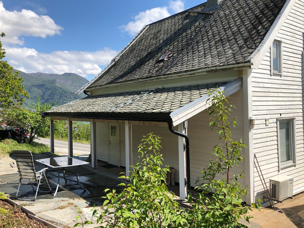Casa acogedora y espaciosa junto al fiordo. Ven a vivir y relájate en nuestro pequeño viñedo orgánico y granja de frutas en Leikanger junto al hermoso Sognefjord. La casa está totalmente equipada con todo lo necesario. Patio exterior privado y pérgola para relajarse y disfrutar de la cena y una bebida. Buena ubicación para hacer senderismo, nadar y actividades al aire libre. O simplemente disfruta del jardín, las vistas y un agradable paseo a lo largo de la costa del fiordo. La zona también tiene algunos sitios históricos interesantes para explorar. ¡Te damos la bienvenida!