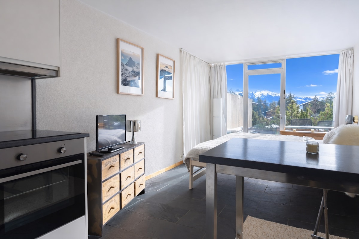Estudio cálido y acogedor con vistas a los Alpes