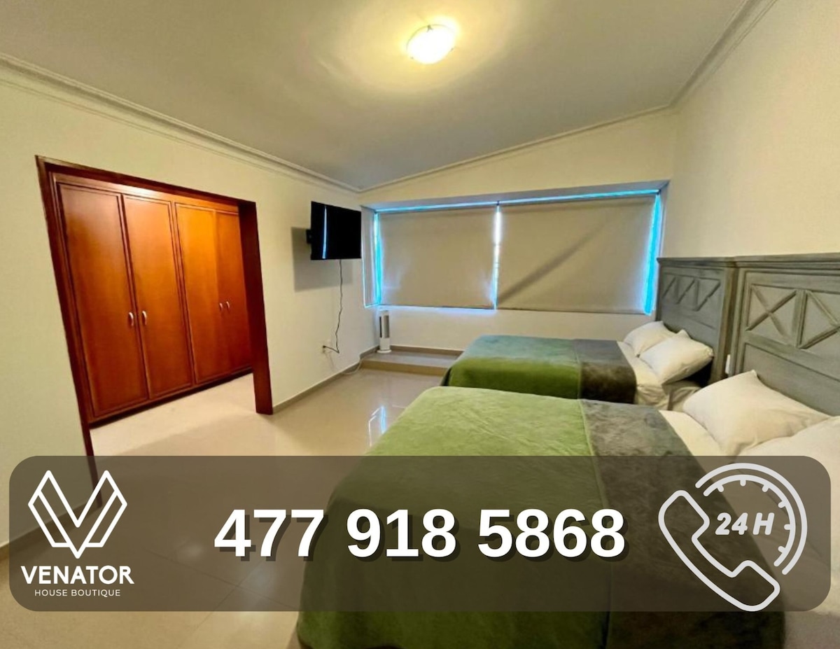 Tú y tus colegas, amigos y/o familiares estarán cerca de todo si te hospedas en este alojamiento céntrico de fácil acceso al foro PARUNO (caminando), Estadio de Base Ball de los BRAVOS centro de León, Plaza Mayor, Poliforum, Feria de, Estadio de fut bol, Zoológico, Festival del Globo. Ya sea de negocios, trabajo, compras o de placer, estarás siempre bien conectado además; caminando encontrarás: cafés, bares, restaurantes , farmacias y podemos ofrecer traslado alojamiento-aeropuerto y central.