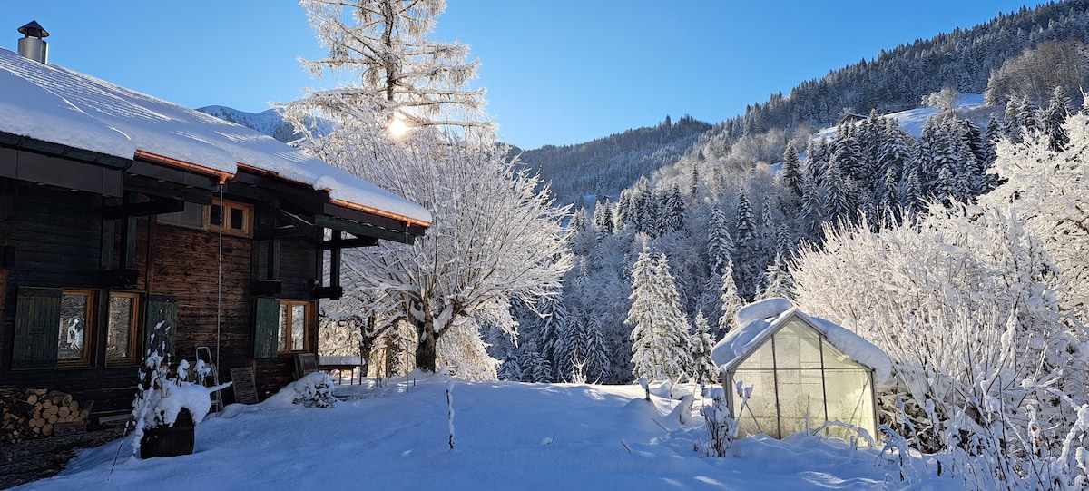 Encantador chalet antiguo de madera y piedra con vistas al Mont Blanc