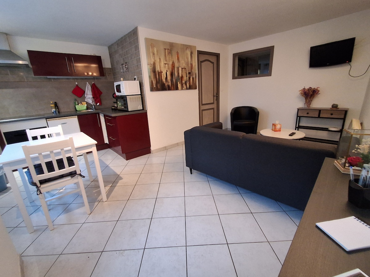 Bonito estudio en casa de un habitante con un dormitorio amplio y luminoso con vistas despejadas, cocina con microondas combinado parrilla multifunción (sin placa de cocción) ,multi-cocina Moulinex, cafetera Senseo y baño. Posibilidad de disfrutar de una terraza , un campo de petanca privado y también la disponibilidad de una cama plegable para niños menores de 2 años posibilidad de alquilar 2 vttae Lapierre totalmente suspendido para visitar los alrededores. Precio: 40 € por medio día en bicicleta