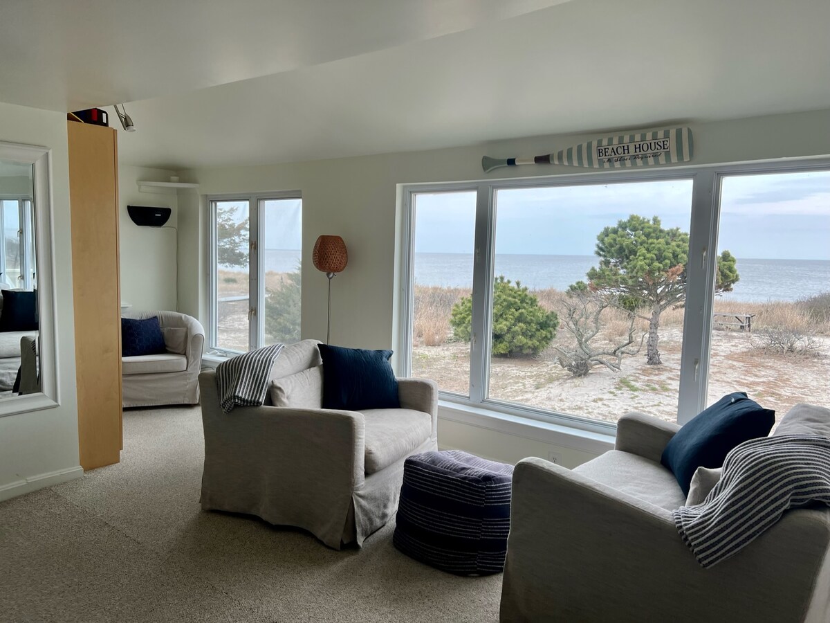 Casa frente a la playa con vistas despejadas a la bahía. Tu grupo disfrutará de asientos en primera fila para impresionantes amaneceres y vistas al agua desde el LR elevado y la terraza envolvente. La amplia terraza con parrilla y mesa de fuego es un lugar ideal para tomar tu café de la mañana o reunirte para cenar y disfrutar de las vistas y los sonidos sin obstáculos de la bahía. ¡Quédate y descubre lo que hace que Broadkill Beach sea tan especial! No se proporcionan sábanas, pero se pueden alquilar a empresas locales de ropa de cama.