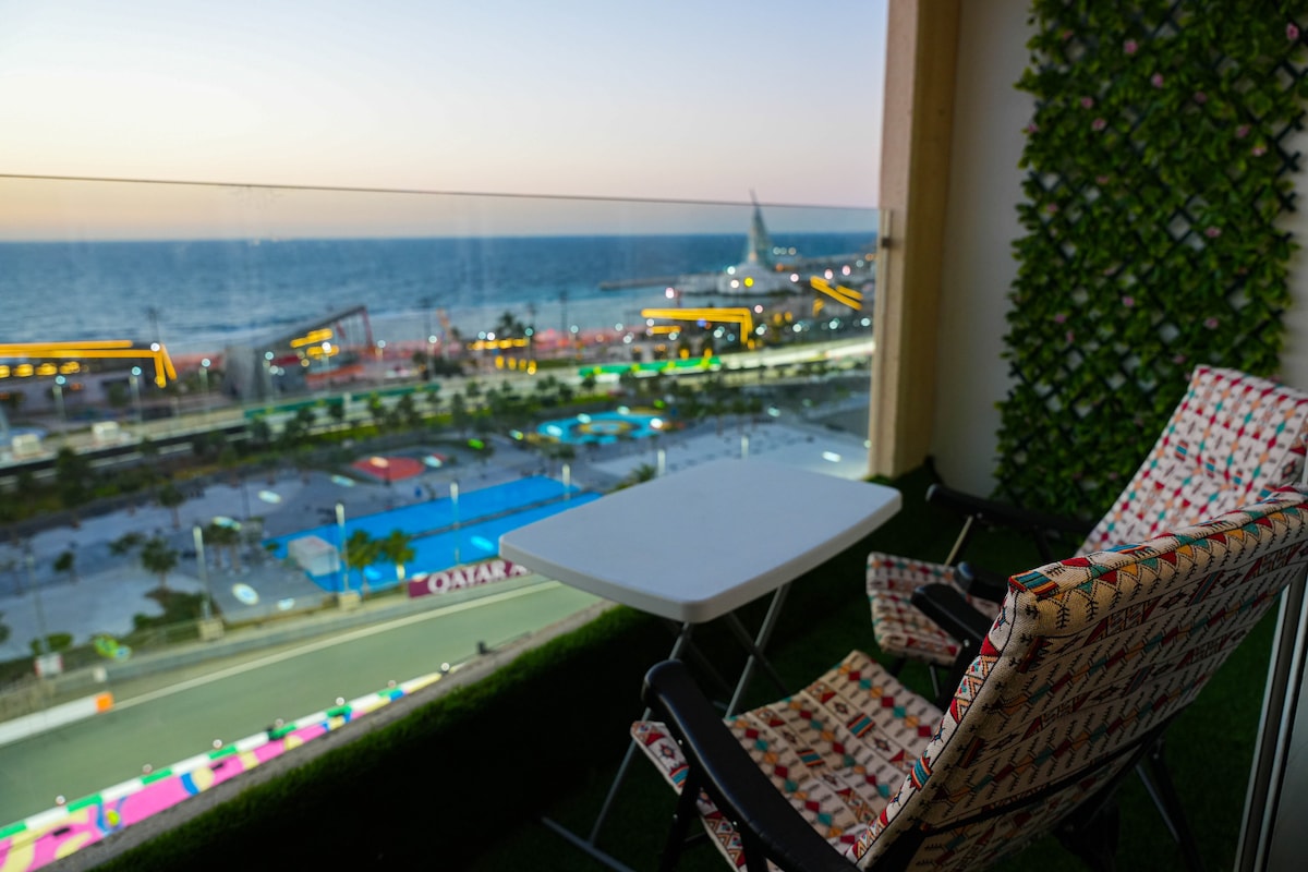 Exclusivo ático de 2 dormitorios frente a la playa con terraza privada, justo en la costa de la zona de Asala. A solo 5 minutos a pie del mercado de Asala, el principal mercado local de Dahab con todas las tiendas. El inicio del paseo turístico (extremo norte) también está a 5 minutos a pie a lo largo de la playa. Nota: Debido a la alta ocupación, no suelen ser posibles las llegadas anticipadas ni las salidas después de la hora establecida, ya que se necesita tiempo para dejarlo impecable. Ten en cuenta esto antes de reservar. Sin embargo, puedes dejar tus maletas.