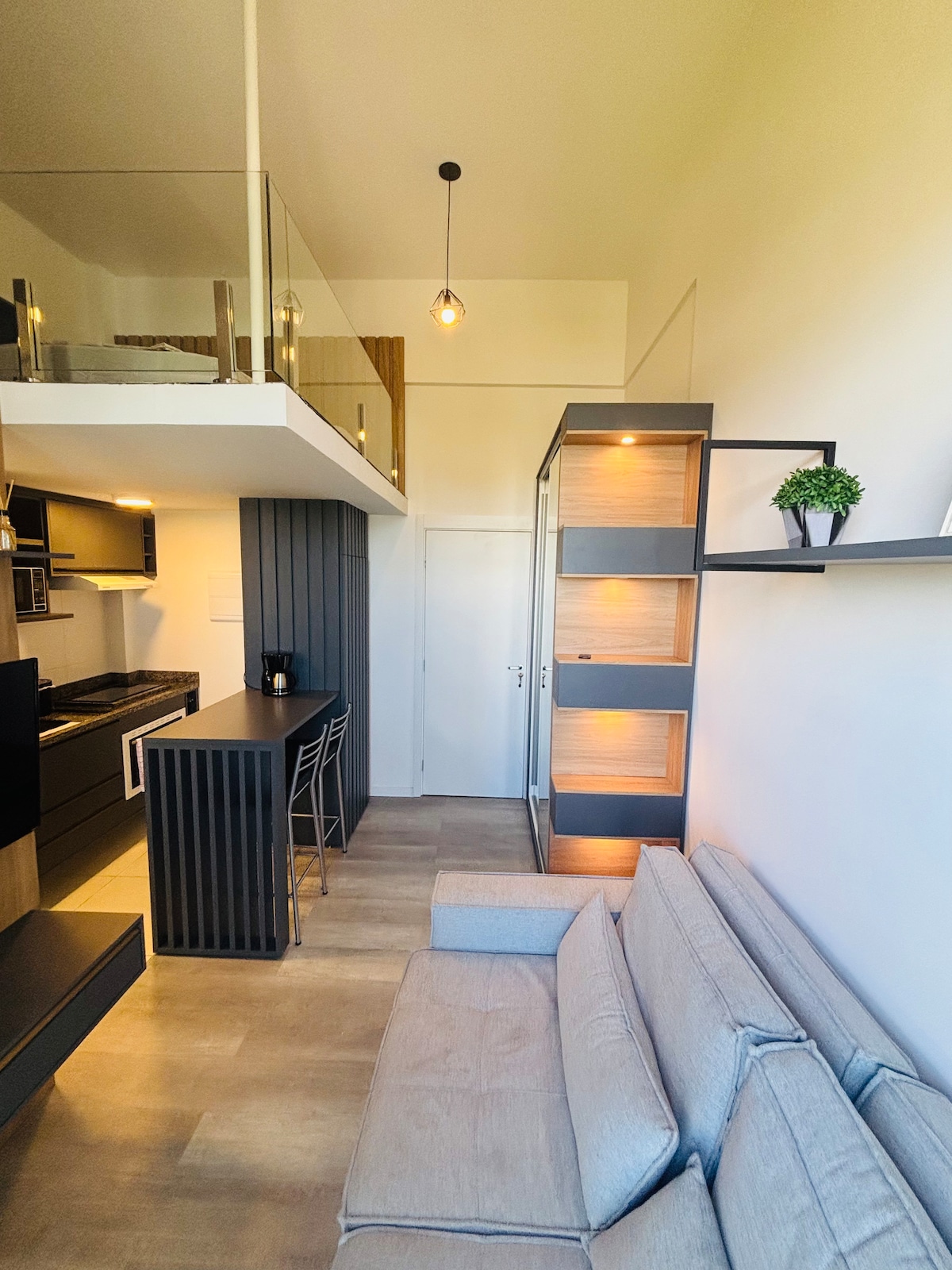 Estudio de diseño firmado por arquitectos en el corazón de Curitiba. Totalmente amueblado con una decoración moderna y contemporánea, electrodomésticos de primera categoría y acabados impecables. Tiene capacidad para 3 personas con una cama doble y una cama individual. Cocina completa, wifi de alta velocidad, TV inteligente y aire acondicionado. Perfecto para el trabajo o el ocio. Ubicación privilegiada en el centro, cerca de todo. ¡Disfruta de una experiencia de alojamiento superior en un espacio único y sofisticado! La ducha es perfecta😍