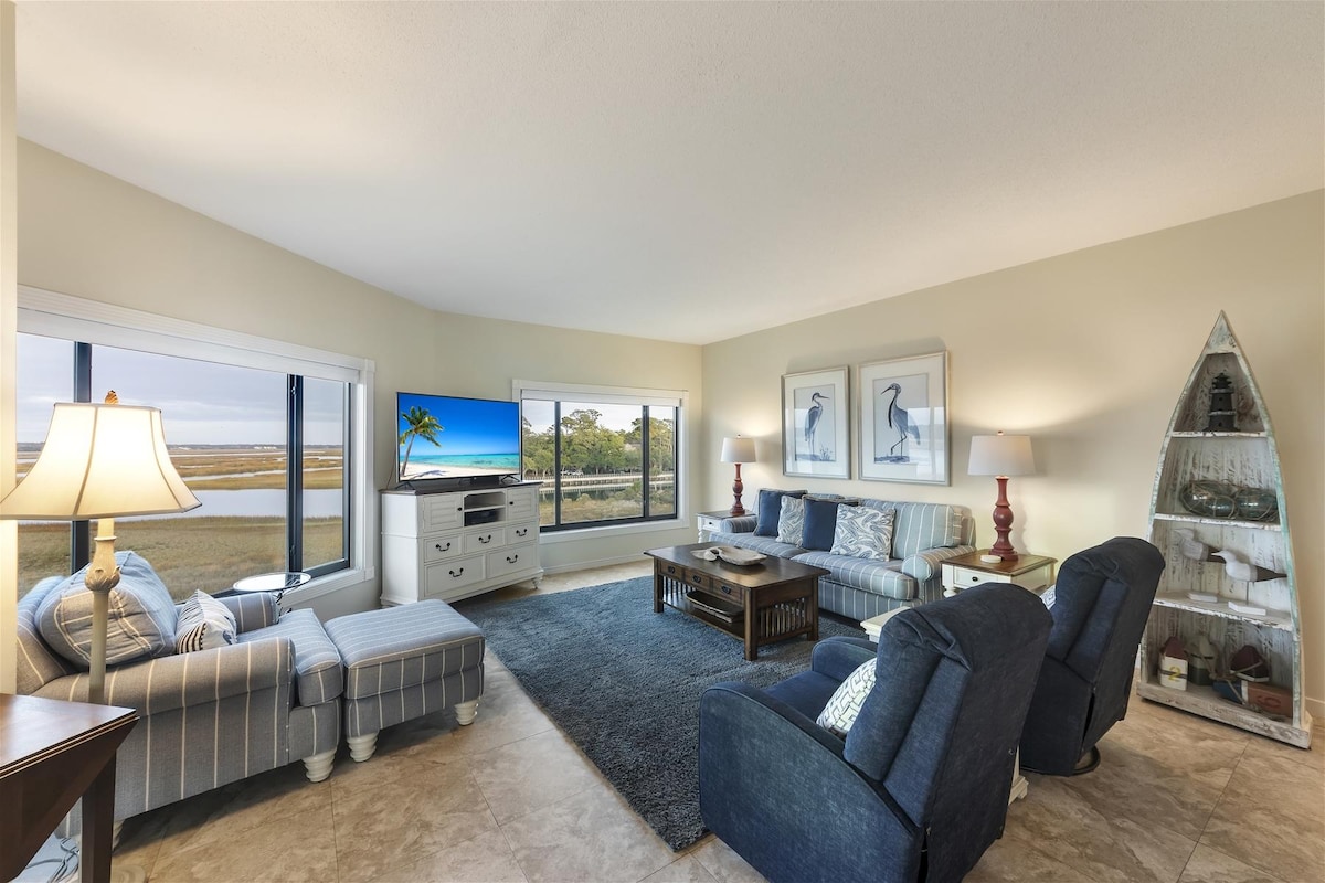 Read our reviews! We strive to provide an unforgettable Hilton Head experience in our renovated villa with ocean views, comfortable lounging, plush beds, well-appointed kitchen and 500+Mbps WiFi! Our bright, open living space features floor-to-ceiling windows overlooking the pool, beach and the Atlantic Ocean! The living room sectional expands into a massive lounger for all! Have a big group? We also offer the immediately next-door unit, identical to this one!