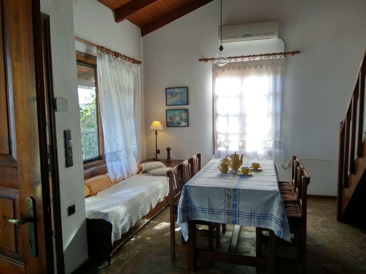 La casa fue construida antes de 1940 y en ese entonces solía ser la casa del maestro del pueblo. El sótano era el trastero de la resina. Solo en 1975, mi abuelo, Dimitris, también pudo comprar la casa y el sótano, con el fin de usar todo el edificio como trastero. Luego, en 2019, mi familia decidió transformar el piso de arriba como una habitación de Airbnb y el sótano como trastero para el vino y el aceite.
