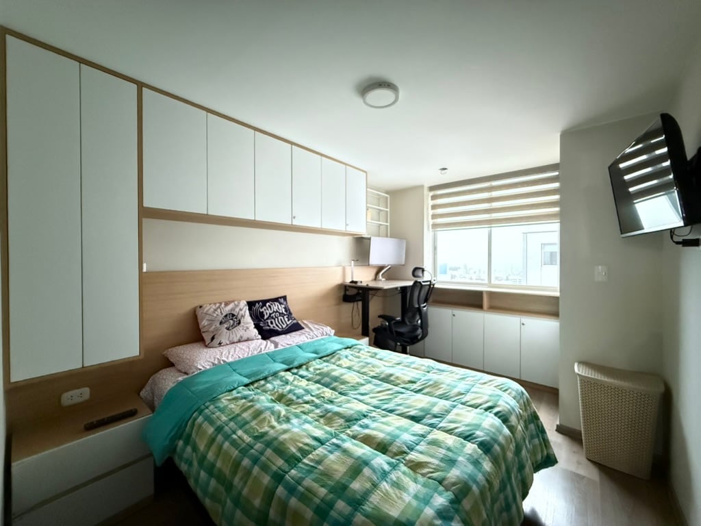 El mejor espacio para hospedarse en Barranco. Ven y disfruta de un espacio tranquilo y en un distrito que tiene lo mejor en turismo, culinaria, museos y playa. Estamos ubicados frente a un parque y a dos cuadras del Malecón con vista al mar. Por si te gusta pasear o hacer deporte este lugar es perfecto para ti. Si quieres realizar trabajo remoto, lo pasarás increible con TV 50", terraza y, para tus momentos de descanso, una piscina con vista al mar. A muy pocas cuadras de Miraflores.