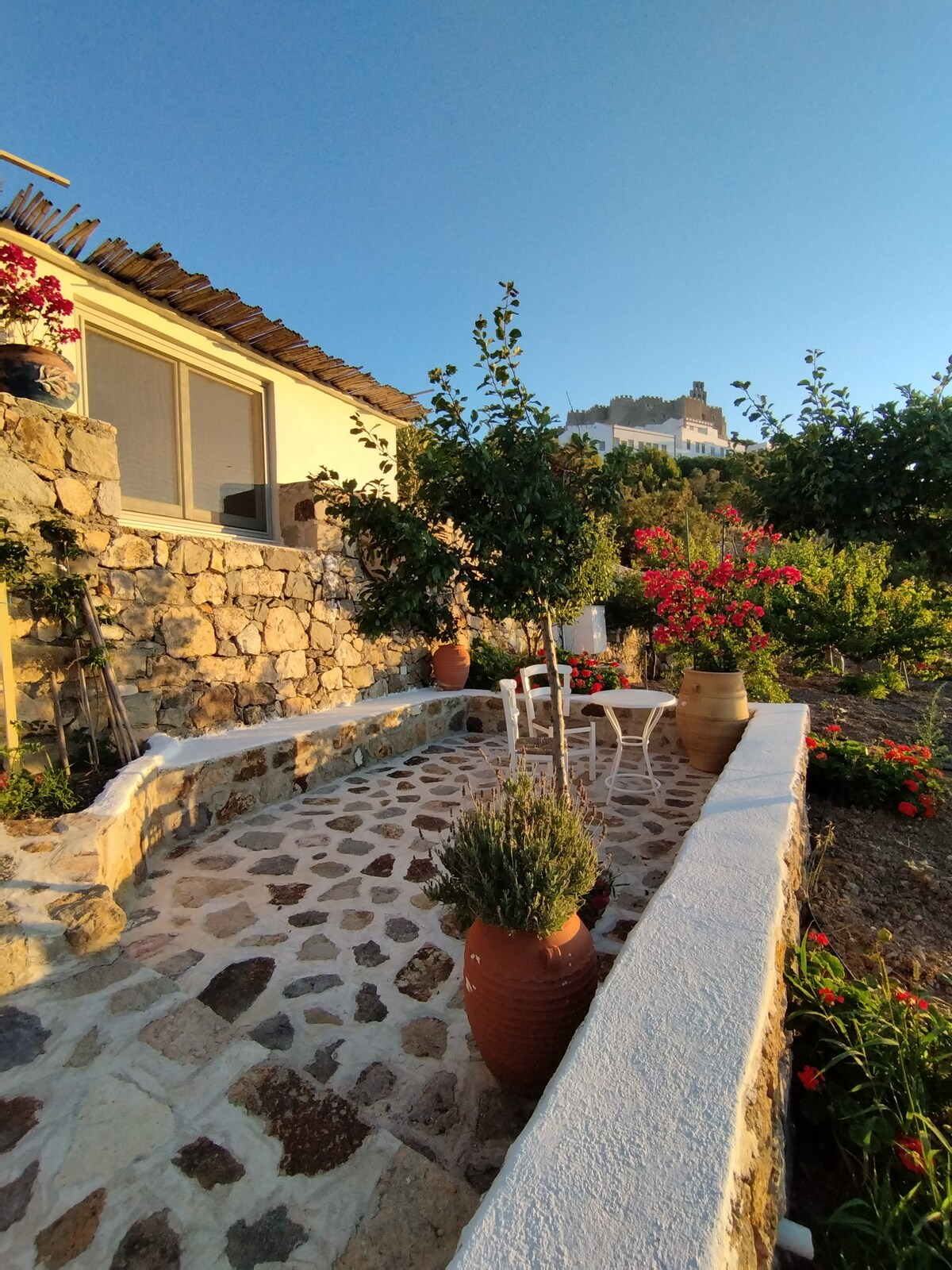 Ubicada en el corazón de una hermosa finca de 40 acres, en un entorno tranquilo con vistas a la playa de Kampos, esta encantadora casita es ideal para una experiencia de vacaciones auténtica y serena en Patmos.