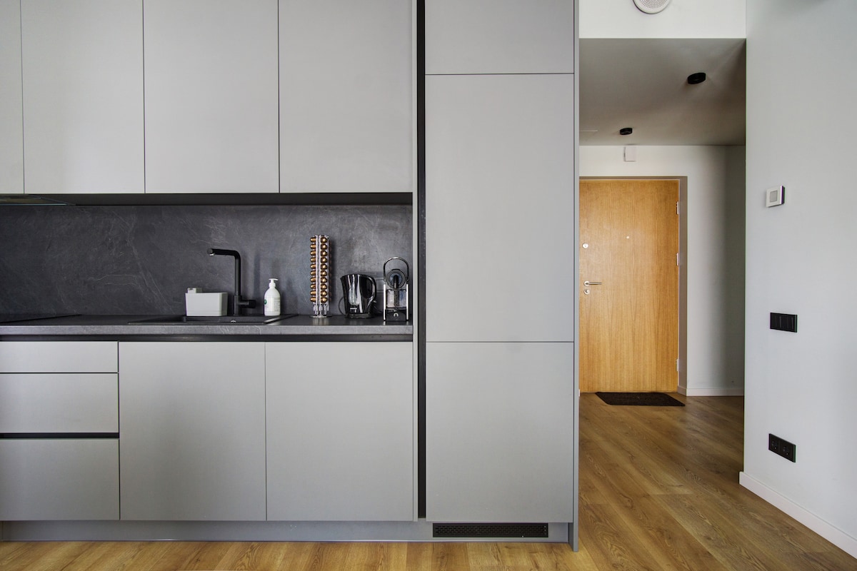 Un apartamento de dos habitaciones nuevo y elegante estratégicamente ubicado en la zona moderna de Vilna. La combinación perfecta de acceso rápido y fácil a pie al centro de la ciudad y la proximidad a la naturaleza: río cercano y los hermosos parques para dar un agradable paseo. Además, junto a la casa hay un nuevo y completo complejo deportivo. El apartamento está totalmente amueblado, con todo el equipo de cocina, electrodomésticos, espacio de trabajo designado y un amplio balcón.