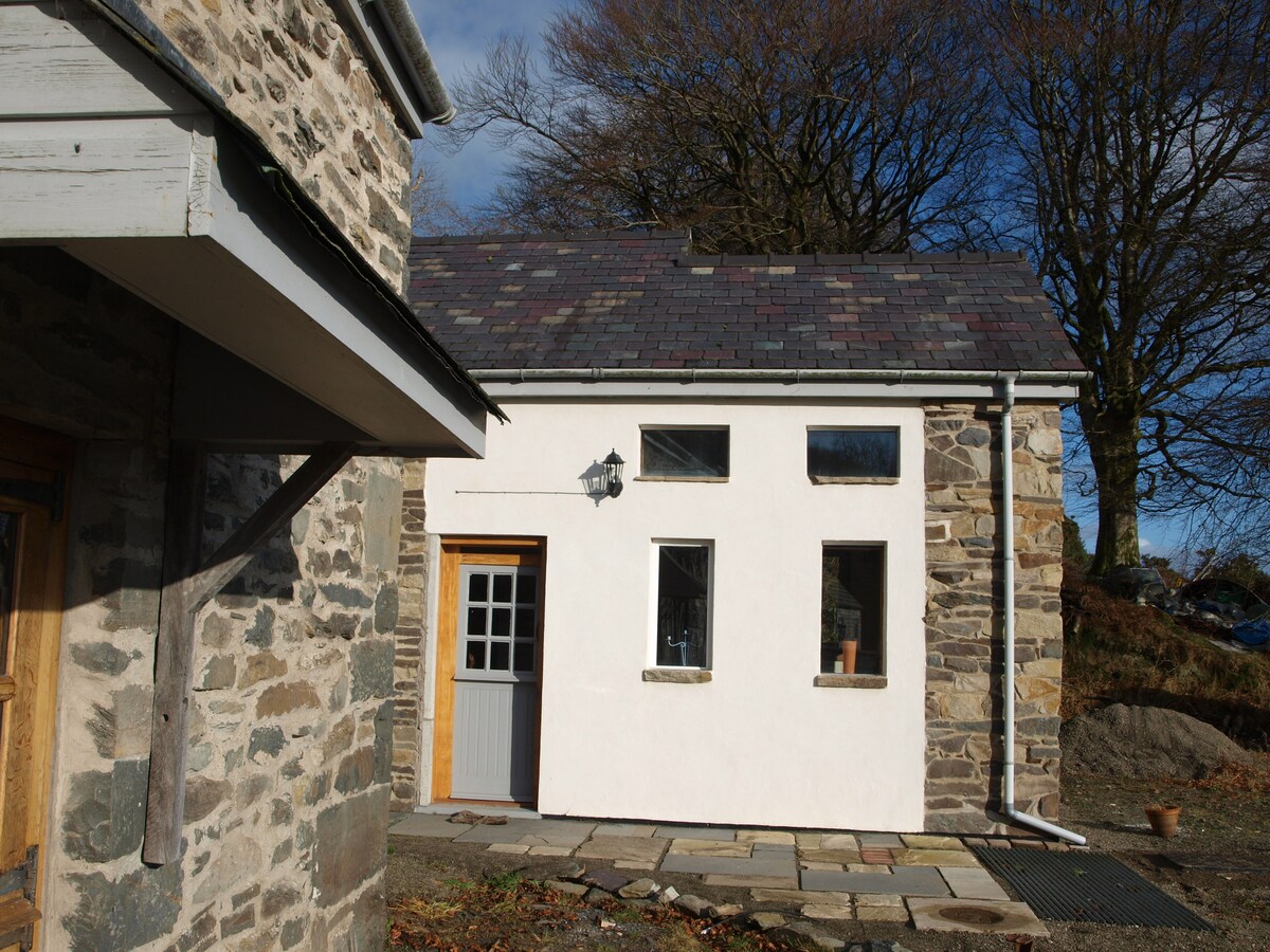 Cilcain es una pequeña, pero bien equipada casa de campo nueva, al lado de, pero separada de, nuestra antigua casa de campo. Situado en un entorno tranquilo, con vistas. Ideal para 4 adultos, o 2 adultos + 2 niños, ya sea que quieran caminar, andar en bicicleta, explorar o tener un descanso tranquilo. Situado entre las montañas del Cámbrico y el mar - 10 millas de la costa. Se proporcionan té y café y algunos artículos básicos del armario de la tienda. Descuento disponible para 4 noches o más (consulta a continuación). Acceso: Vea otras cosas a tener en cuenta a continuación.