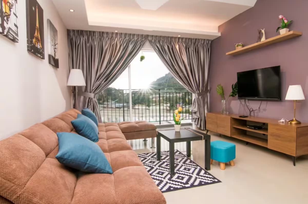 Welcome to our brand new cozy apartment with 3 bedrooms and 2 bathrooms. Each room featured a premium hotel bed with luxurious linens, a modern dining area & kitchenette. It can comfortably accommodate up to 6 guests. Our location is an unique place to stay with hassle free from traffic jam due to peak season. It is fit for small family, couples or friends who looking forward to rest and breath of fresh air. Our unit is strategically located opposite of Tea Plantation, it is just 1 mins walk.