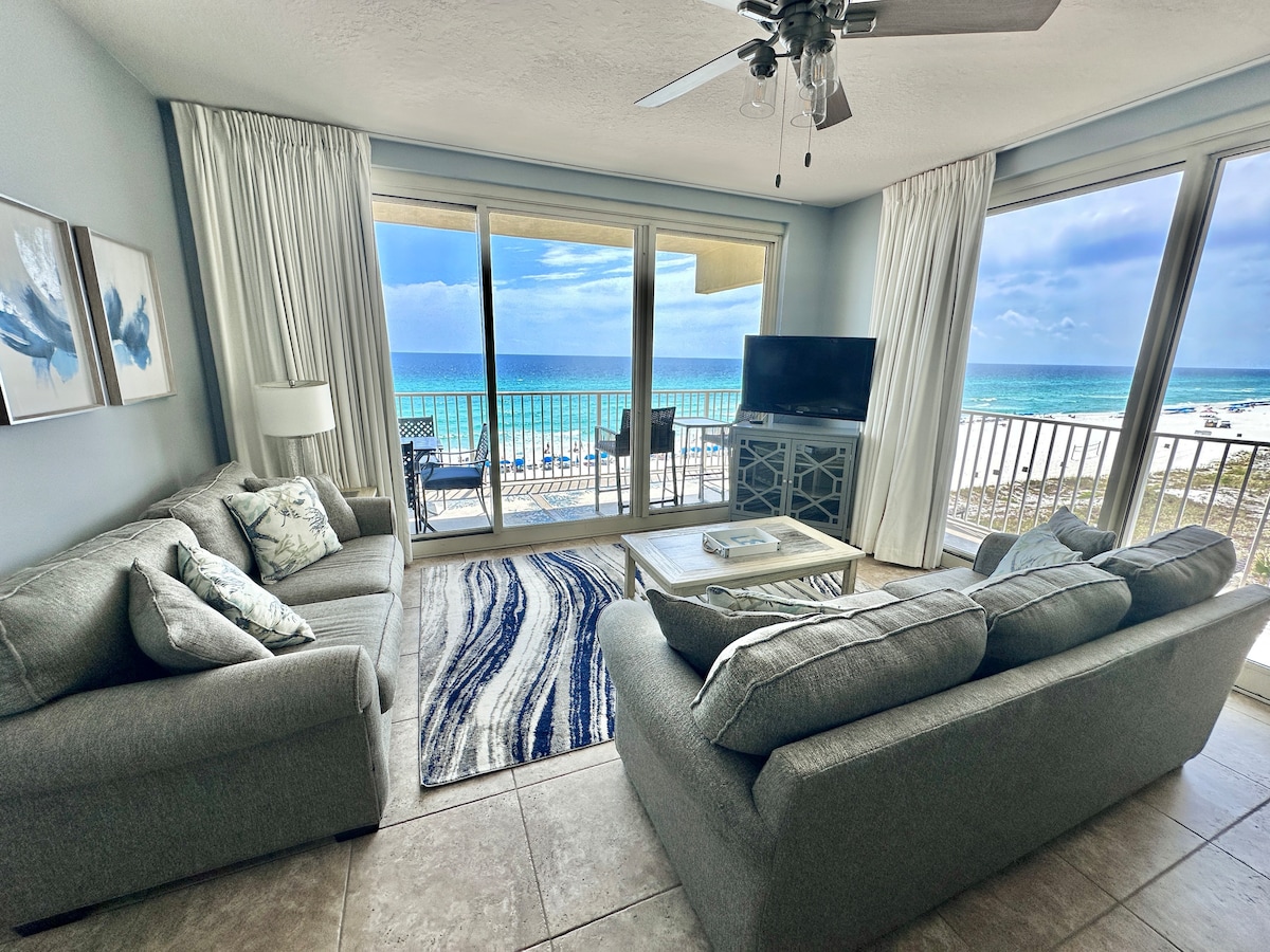 Servicio gratuito de tumbonas y sombrillas - 10/31. ¡Aprovecha nuestras tarifas especiales con descuento durante las mejoras de la propiedad! Las mejoras en la construcción exterior alrededor del resort estarán en curso hasta marzo de 2026. Al menos 1 piscina permanecerá abierta durante este tiempo. ¡El dormitorio principal con cama tamaño king tiene vistas al Golfo de México! Plano de planta abierto y un amplio balcón, sofá cama tamaño queen que permite que este apartamento duerma 4 cómodamente. ¡Enorme balcón y playa! El requisito de edad para alquilar este apartamento es de 25 años.