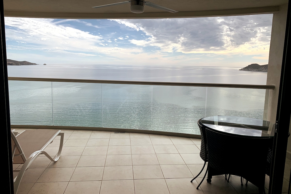 Playa blanca condo-hotel es un lugar exclusivo frente a la playa y con una vista espectacular del Mar de Cortez. El condominio se encuentra en el piso 10 con vista a la piscina y al mar. Se cuenta con un reglamento para garantizar una sana convivencia durante su estancia. Contamos con gimnasio, alberca, 4 jacuzzis en área común, jardines, 2 asadores, camastros, Terrazas comunes, bar, tienda en la planta baja, cancha de tenis, y amplió estacionamiento.