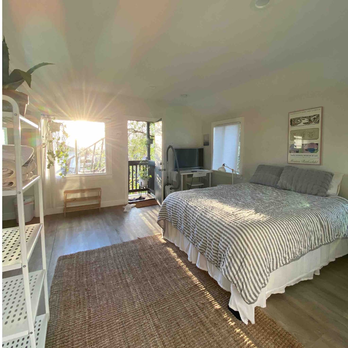 Hola, bienvenido a nuestro moderno y compacto estudio privado independiente (325 pies cuadrados), situado en el centro, cerca de restaurantes, transporte y autopistas. Luminoso y acogedor, con entrada privada, cocina completa, nevera, lavadora/secadora en la unidad y aire acondicionado/calefacción. Diseñado cuidadosamente para ofrecer comodidad y conveniencia, es la base perfecta mientras exploras la ciudad. TEN EN CUENTA que esta es una casa de huéspedes tipo estudio en nuestra propiedad, y que vivimos en la casa de enfrente. Podemos saludarte si te vemos. Se proporcionará 1 permiso de coche.