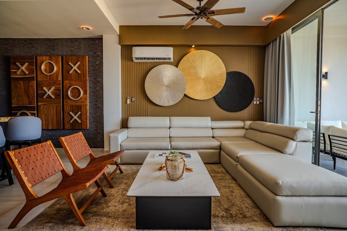 Penthouse de lujo con impresionantes vistas de Cabo San Lucas. Este moderno hogar de 2 recámaras y 2.5 baños cuenta con cocina totalmente equipada y todo lo necesario para una estancia cómoda. Ubicado a solo 5 minutos del centro y de la vibrante vida nocturna de Cabo. Disfruta de tu rooftop privado con jacuzzi y asador, perfecto para relajarte o para organizar reuniones de hasta 20 invitados. Pregunta por nuestros servicios de concierge para vivir una experiencia verdaderamente inolvidable.