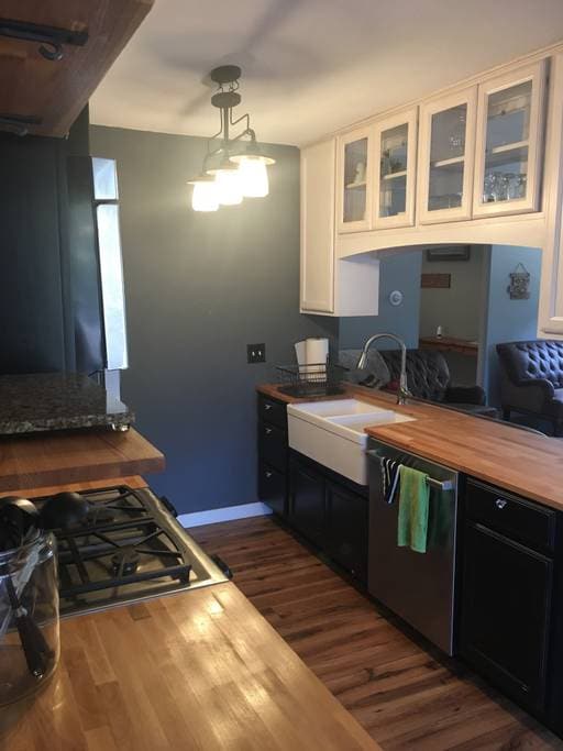 Unidad de invitados en una casa de troncos en Georgetown Lake. Esquía en varios centros vacacionales cercanos en invierno (Loveland a 15 minutos). Las rutas de senderismo y ciclismo te esperan a la puerta principal, así como la pesca, el rafting y la tirolesa. El anfiteatro Red Rocks está a 35 minutos. Varias zonas de aguas termales se encuentran dentro de paseos panorámicos. La unidad frente al lago tiene una entrada independiente desde el piso ocupado por el propietario y cuenta con una cocina gourmet, comedor y sala de estar, dos dormitorios, dos baños, lavandería, estacionamiento para dos coches, porche y parrilla.