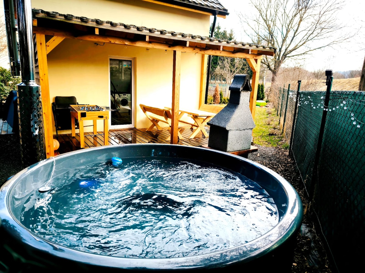 Te invito a la casa para parejas enamoradas. Este pequeño espacio está lleno del olor a madera y a los arbustos y pinos que crecen alrededor. Los ciervos y un gran número de diferentes especies de aves son visitantes habituales de los campos circundantes. Acceso ilimitado a Internet en el sitio. ¡¡¡Lo recomiendo de corazón!!!