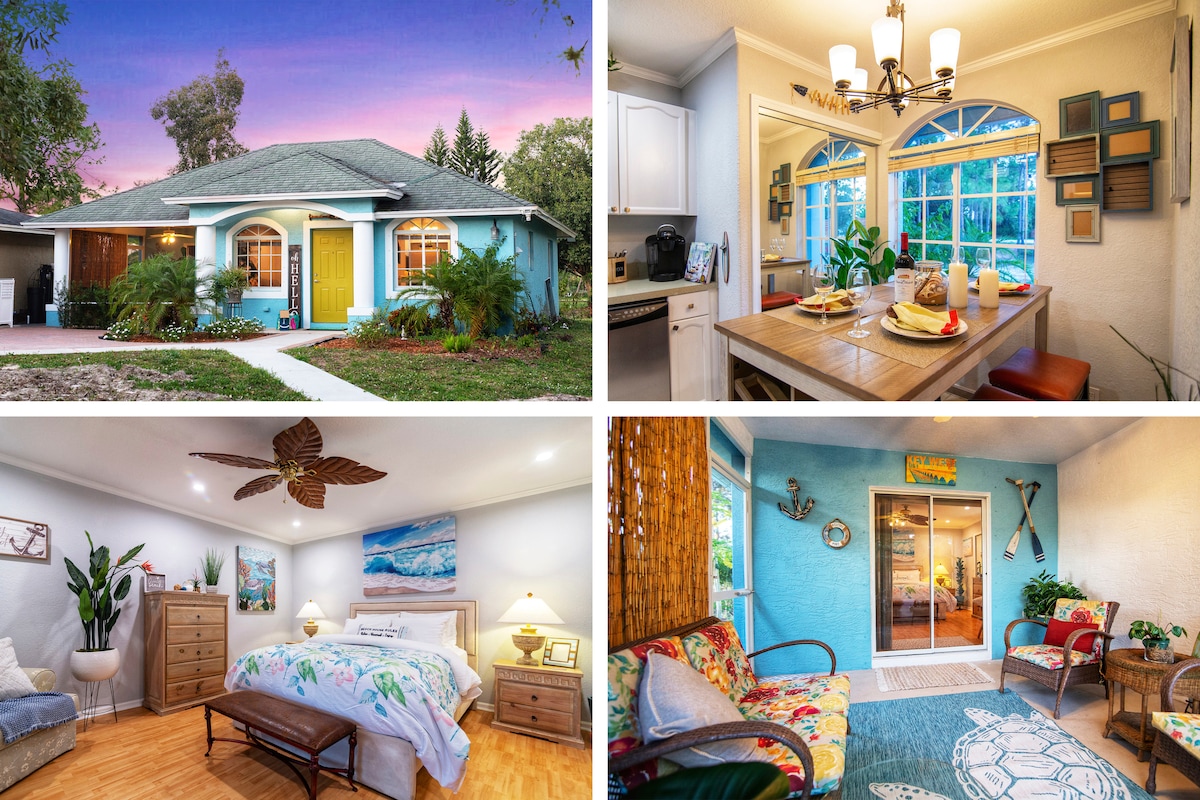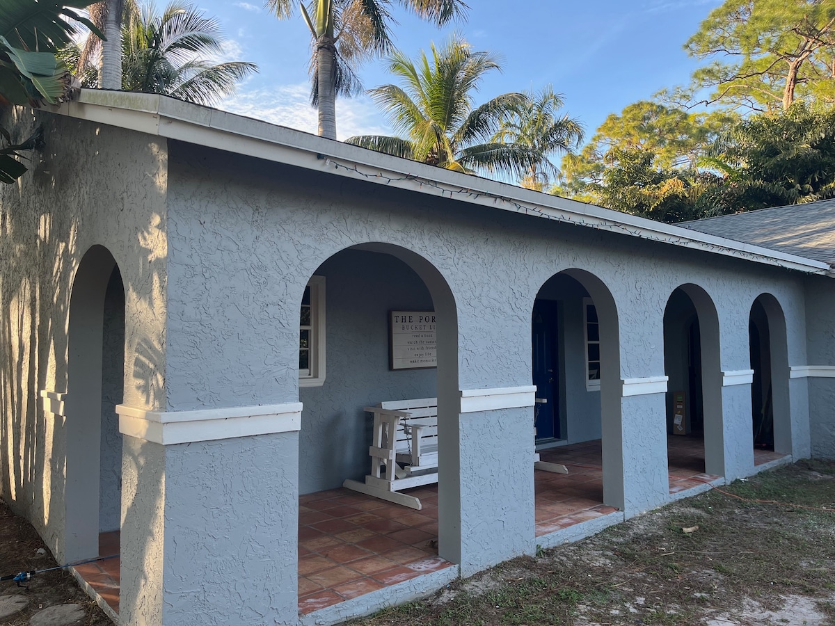 Relájate en esta tranquila suite con entrada independiente ubicada en el país del sur de Florida. A diez minutos de Publix, pero a millas de la vida de la ciudad. Un punto de salto perfecto para todo lo relacionado con el sur de Florida. Cayos, Palm Beach, Everglades, playas. Camine por el patio y el vecindario. Encontrarás 4 tipos diferentes de bambú en el patio, mucha vida silvestre, incluidos pájaros carpinteros, ibis, pavos reales y más. El sendero de esnórquel Phil Foster está a 35 minutos. Tenemos equipo de esnórquel que puedes usar, también sillas de playa.