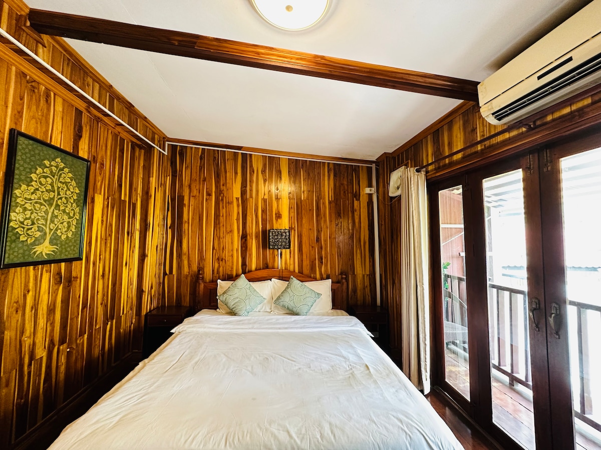 Ubicación, ubicación y ubicación, solo sal por la puerta y todo lo que quieras explorar estará justo delante de tus ojos. Nuestra casa de huéspedes está en el centro de Luang Prabang, junto a la calle del mercado nocturno y el Museo Nacional. Nuestra habitación tiene wifi, aire acondicionado, ventilador y está en una zona tranquila. Construimos la casa de huéspedes al estilo de Laos con madera en la pared y el suelo. También limpiamos la habitación todos los días para ti. ¡Te damos la bienvenida a Luang Prabang y nos encantaría que te gustara Luang Prabang como a nosotros!