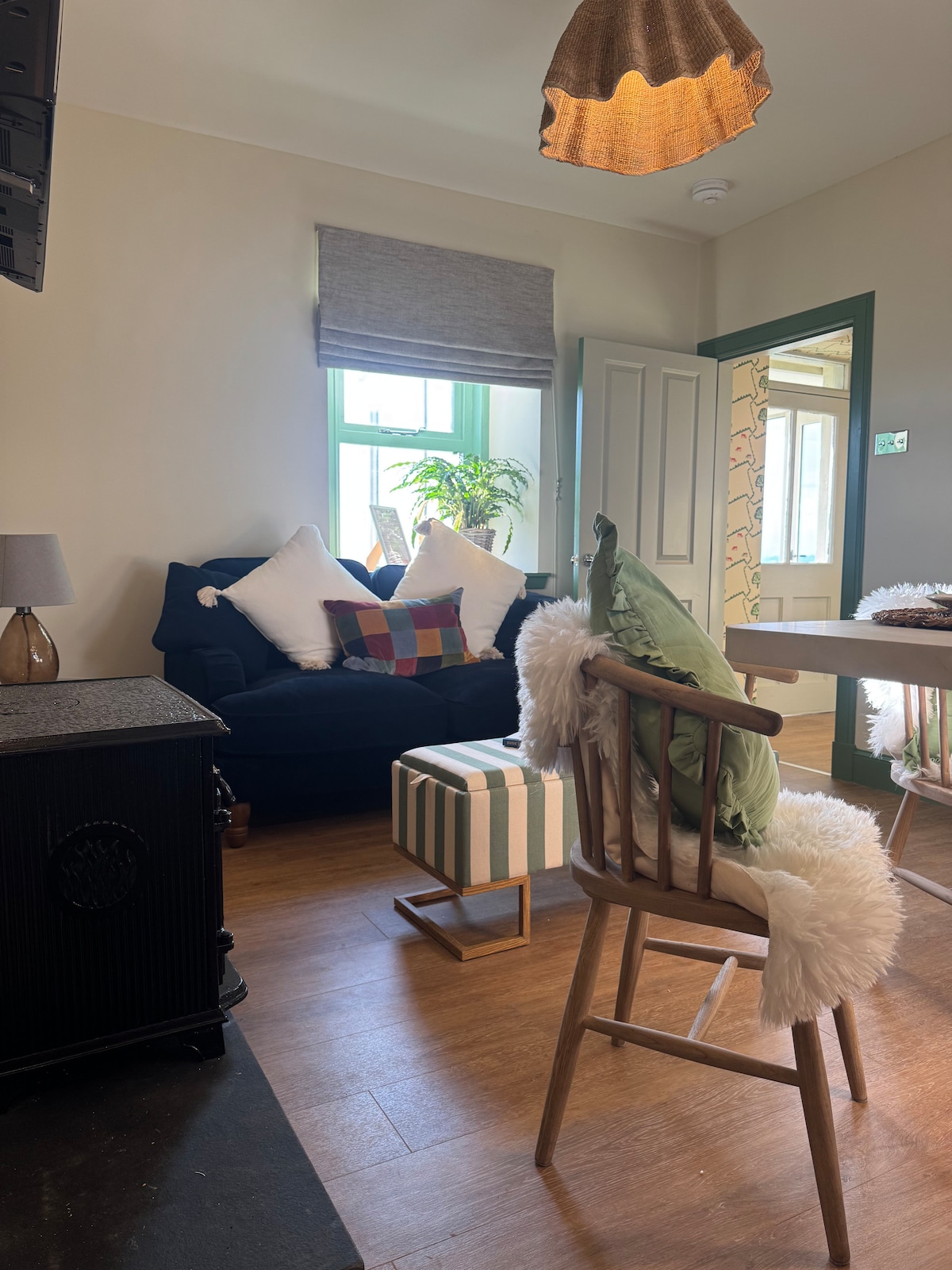 Una casa única y moderna con vistas completas al mar. Una propiedad espaciosa pero acogedora con un dormitorio en el nivel del entrepiso y un baño privado con las mejores vistas al mar para despertarse. La planta baja es un salón/cocina y comedor de planta abierta con calefacción por suelo radiante y estufa de leña. La propiedad también tiene un lavadero con lavadora y polea y un aseo/ducha en la planta baja. 1 plaza de aparcamiento privado disponible en el sitio.