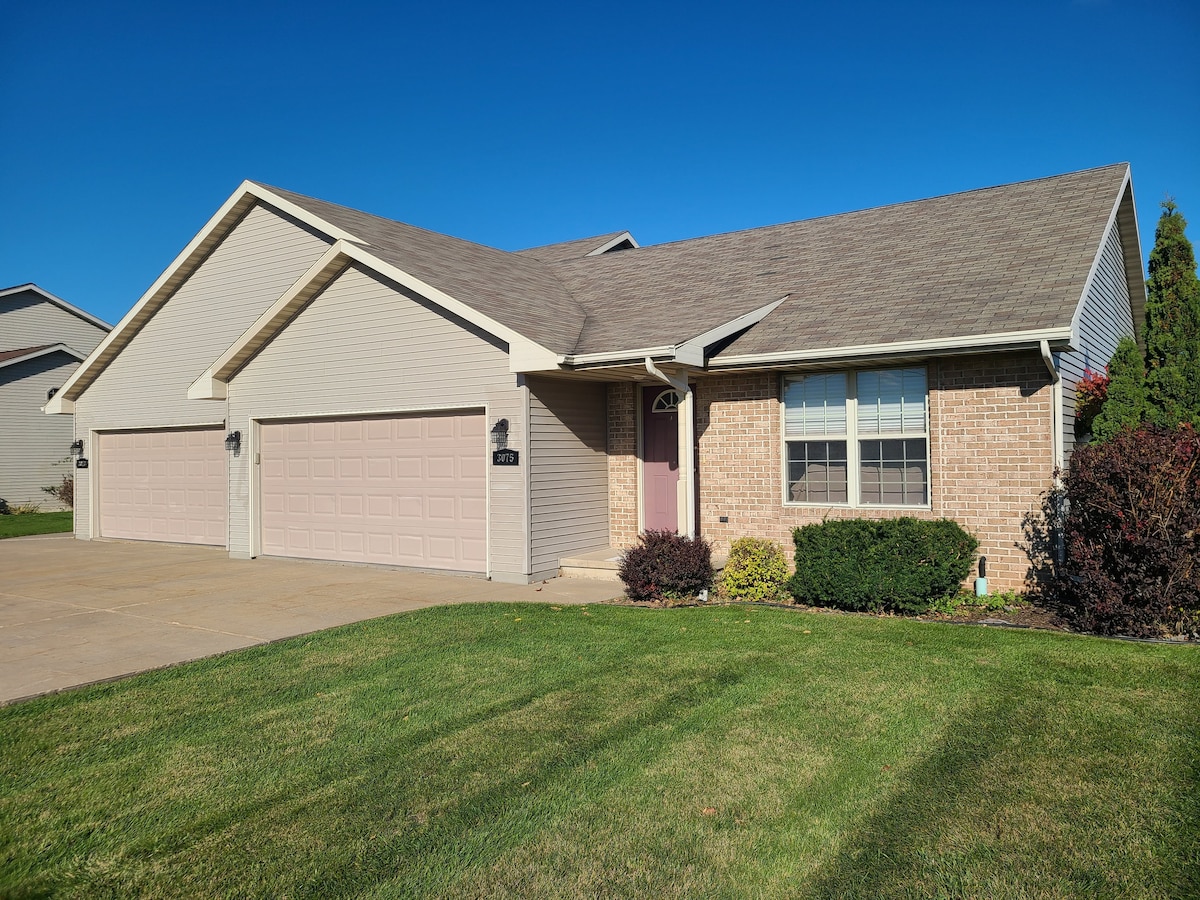 Entrada lateral privada en la planta baja con grandes ventanales con luz natural, baño privado con artículos de aseo, lavadero con lavadora/secadora, sala de estar privada con sofá, TV con Hulu, wifi, microondas, cafetera, agua embotellada y mininevera. Tienes todo el piso para ti, ya que vivimos arriba. La casa está situada en una tranquila subdivisión rural. Ciervos, aves y otros animales salvajes son visitantes diarios. ¡Fácil acceso en coche al estadio Lambeau Field, al aeropuerto y al centro de Green Bay!