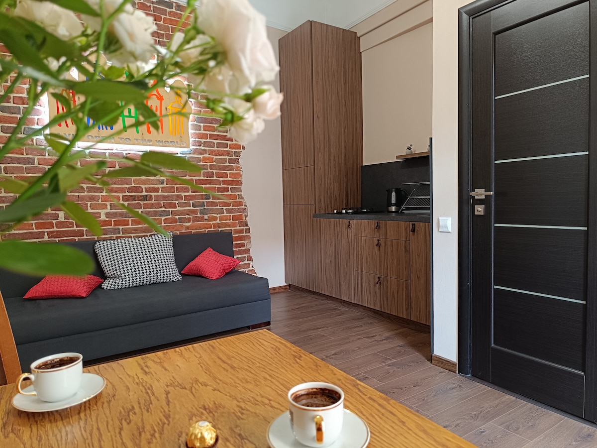New apartment in the heart of the city located on a quiet street will allow you to relax despite the noise outside the door. The room has everything you need even for your long stay: fitted kitchen, refrigerator, induction hob and everything you need for cooking ,washing machine with dryer,internet and smart tv.Near restaurants,entertainment venues,cathedral,aquarium. Wellcome🩵💛