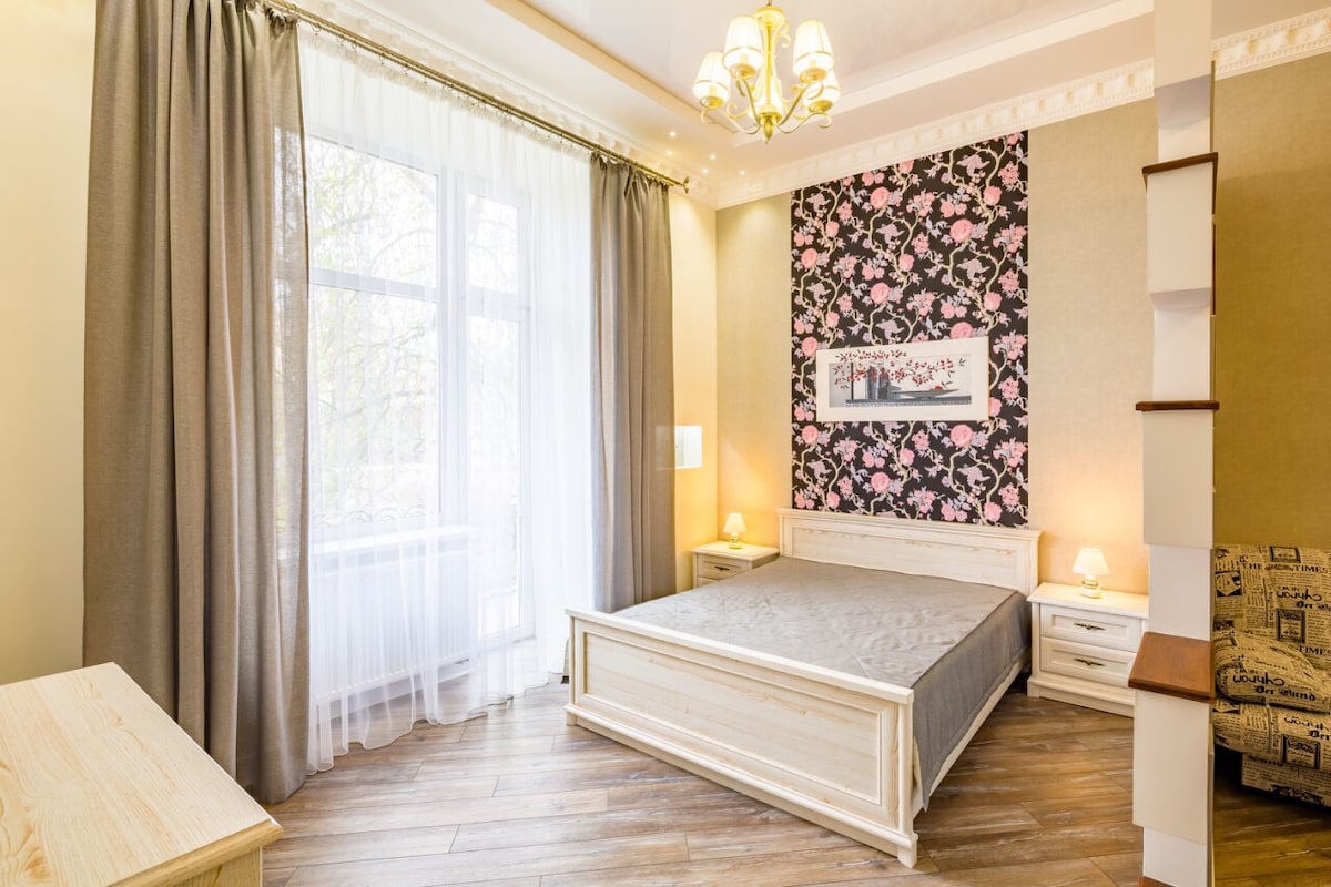 El apartamento está en pleno centro ,cerca de la Ópera. La habitación tiene 4 ventanas,una habitación luminosa, una cama doble (160/200) con colchón ortopédico, un sofá plegable, un armario. Nueva reforma realizada en abril de 2021. Hay un supermercado justo al lado del apartamento. Calefacción eléctrica, caldera, suelo radiante en la cocina y en el baño. Wifi, TV(smart-tv)