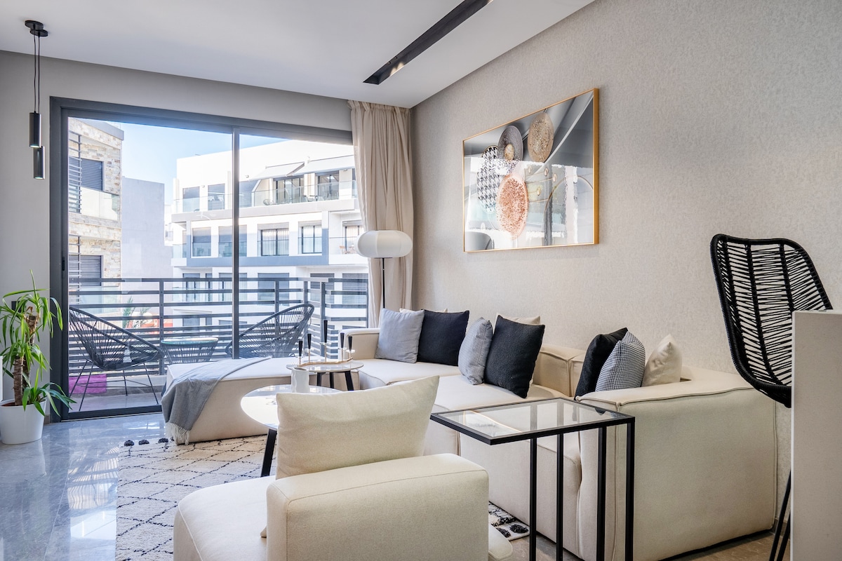 Welcome to this beautiful apartment located in Casablanca’s New Medina, near Habous. Enjoy a refined, thoughtfully designed space with a bright terrace, elegant décor, and modern amenities—ideal for a comfortable stay. A fully equipped kitchen and secure parking ensure convenience and peace of mind. A calm and contemporary retreat where every detail has been carefully considered to make your stay unforgettable.