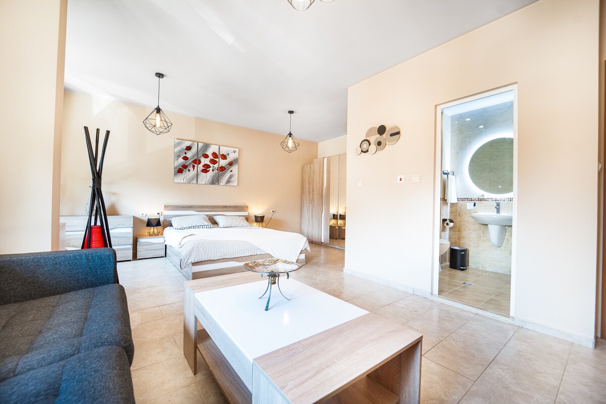 ¡Bienvenido a nuestro estudio y piscina enclavados en la naturaleza con impresionantes vistas panorámicas del valle de Tracia! El lugar es perfecto para hasta 2 adultos que buscan una escapada relajante o un trabajo remoto entre la naturaleza. La disposición de las camas es ajustable: 2 camas individuales o 1 cama doble. Colchones están disponibles por mayor comodidad. El estudio forma parte de una villa habitada, pero independiente. Piscina de temporada. Aparcamiento gratuito.