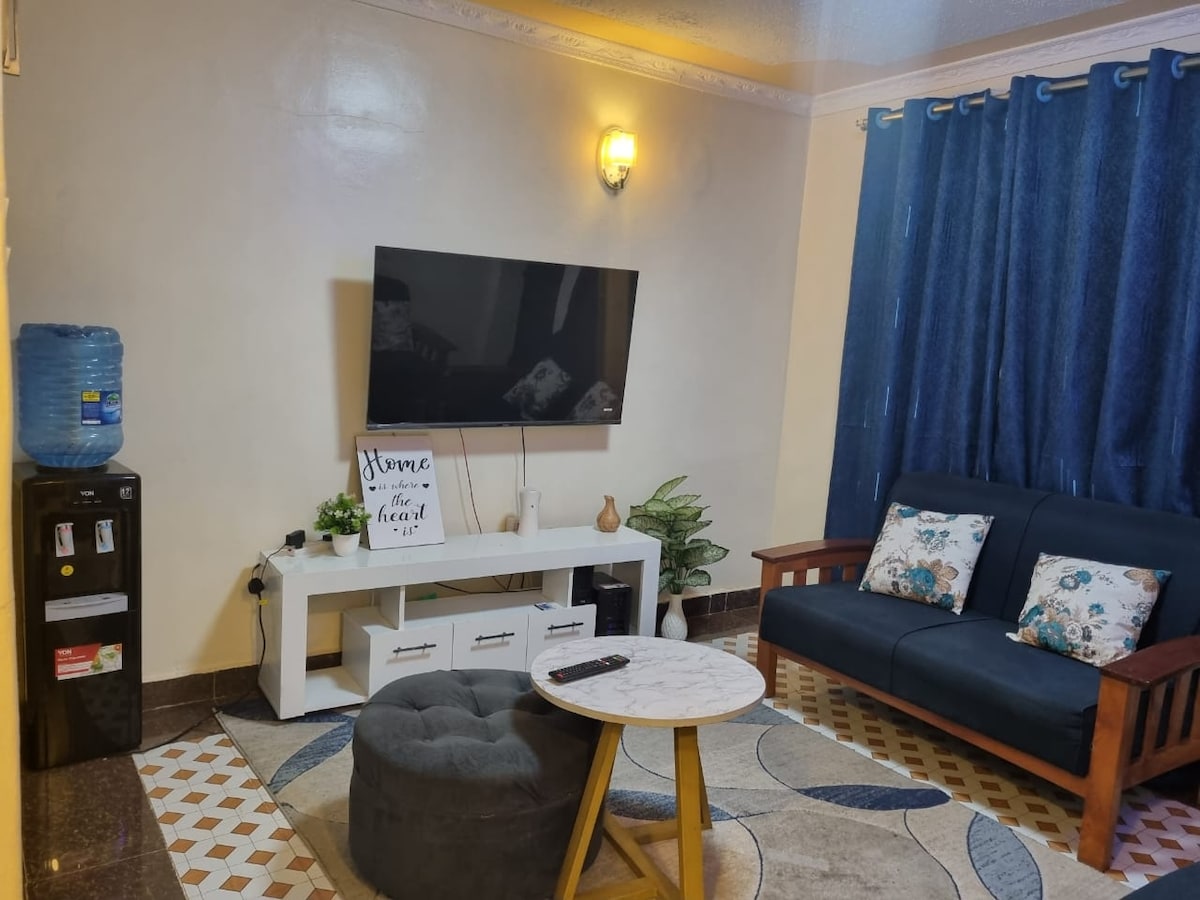 Minicasa prémium, amueblada con buen gusto de 1 dormitorio, de 2 plantas, enclavada en el vecindario tranquilo y seguro de Syokimau. A solo 15 minutos del Aeropuerto Internacional Jomo Kenyatta (JKIA), ofrecemos la combinación perfecta de tranquilidad y comodidad para nuestros huéspedes. Disfruta de la serenidad de la casa mientras te sumerges en la belleza del tranquilo jardín de césped. Lugares de interés y tiempos de viaje. Aeropuerto de Wilson: 35 minutos Estación de tren (SGR): 15 min Centro comercial Gateway: 8 min Parque Nacional de Nairobi: 21 min