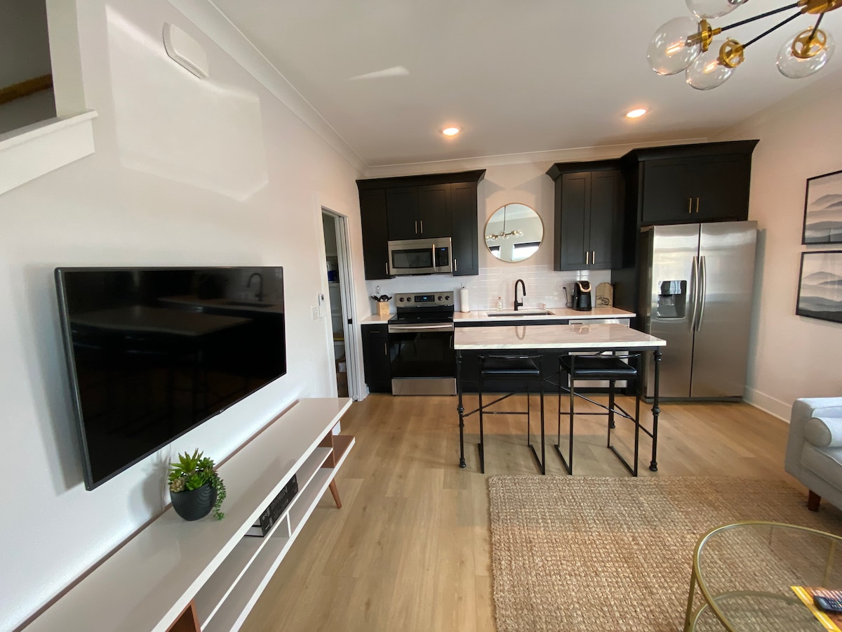 ¡Disfruta de una experiencia elegante en este espacioso y convenientemente ubicado apartamento! Situado en el moderno barrio de East Nashville. Camina hasta las cafeterías, restaurantes y una cervecería locales. ¡A solo 10 minutos de los bares del centro de Broadway y del estadio Nissan y a 13 minutos del Grand Ole Opry! Hay una peluquería en el edificio si necesitas un corte rápido. Cocina totalmente equipada, televisores inteligentes en ambos dormitorios y en el salón. Lavadora/secadora en la unidad, además de estacionamiento gratuito disponible. El apartamento está en el primer piso sin escaleras que subir.