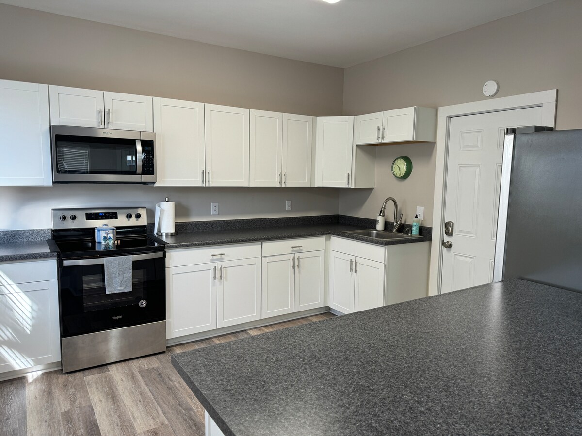Relájate y desconecta en este alojamiento tranquilo, nuevo y elegante. Ubicado cerca de la ciudad, pero parece un paraíso rural escondido. Esta unidad es una de las dos unidades disponibles en un dúplex situado en 5 acres. ¡Con techos de 10 pies, este dormitorio parece mucho más grande! Ofrece una ducha de azulejos, cama tamaño king y sofá cama tamaño queen, cocina completa con encimeras de cuarzo, electrodomésticos KitchenAid e incluye lavadora/secadora apiladas de tamaño completo. ¡Creemos que te encantará!