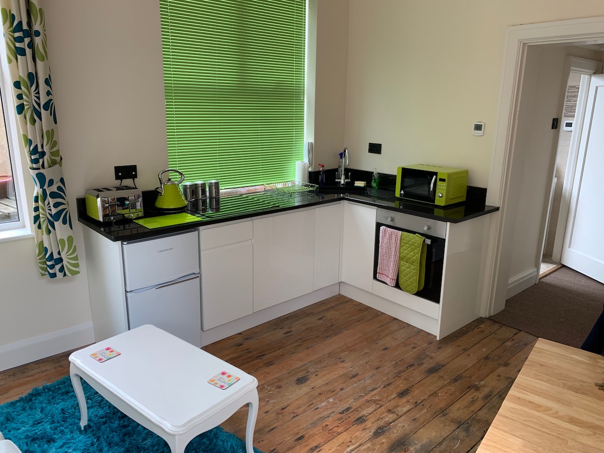 Welcome to our self contained one bedroom annex complete with kitchen, shower room & living room. The bedroom & shower room are freshly decorated for 2026. Guests have a separate entrance which is separated by two doors from the main house. You are welcome to use the garden & bar-be-que and sit anywhere. We have a very friendly dog who generally stays away. We don’t charge extra cleaning fees to bump the price up, we just ask that you leave the annex tidy. Cot bed available to hire for £15
