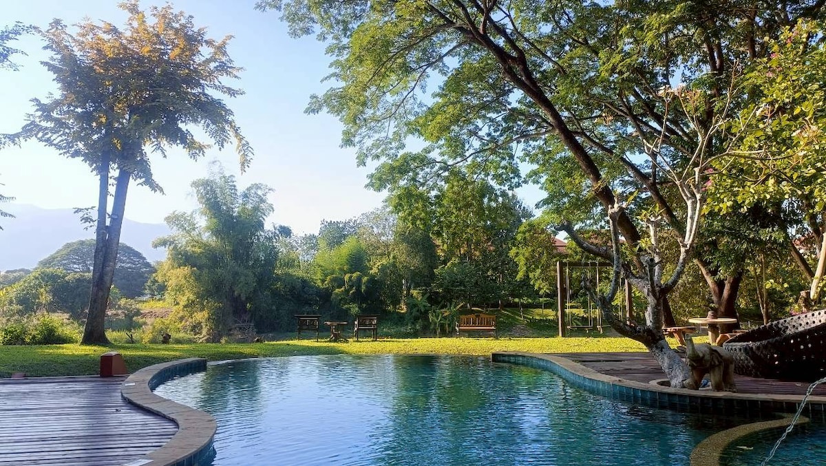 Olvídate de tus preocupaciones en este espacioso y sereno bungalow privado de 2 dormitorios en una finca rural justo al norte de la ciudad de Chiang Mai. Relájate en la terraza, disfruta del hermoso jardín verde y la piscina. Camina por los campos de arroz redondos o los carriles rurales para bicicletas (las bicicletas son gratuitas). Un puente en el jardín cruza el río Maesa y en el rústico pueblo de Pamuang. El entorno tranquilo está cerca de excelentes restaurantes locales, atracciones turísticas y las maravillosas actividades que Mae Rim tiene para ofrecer.