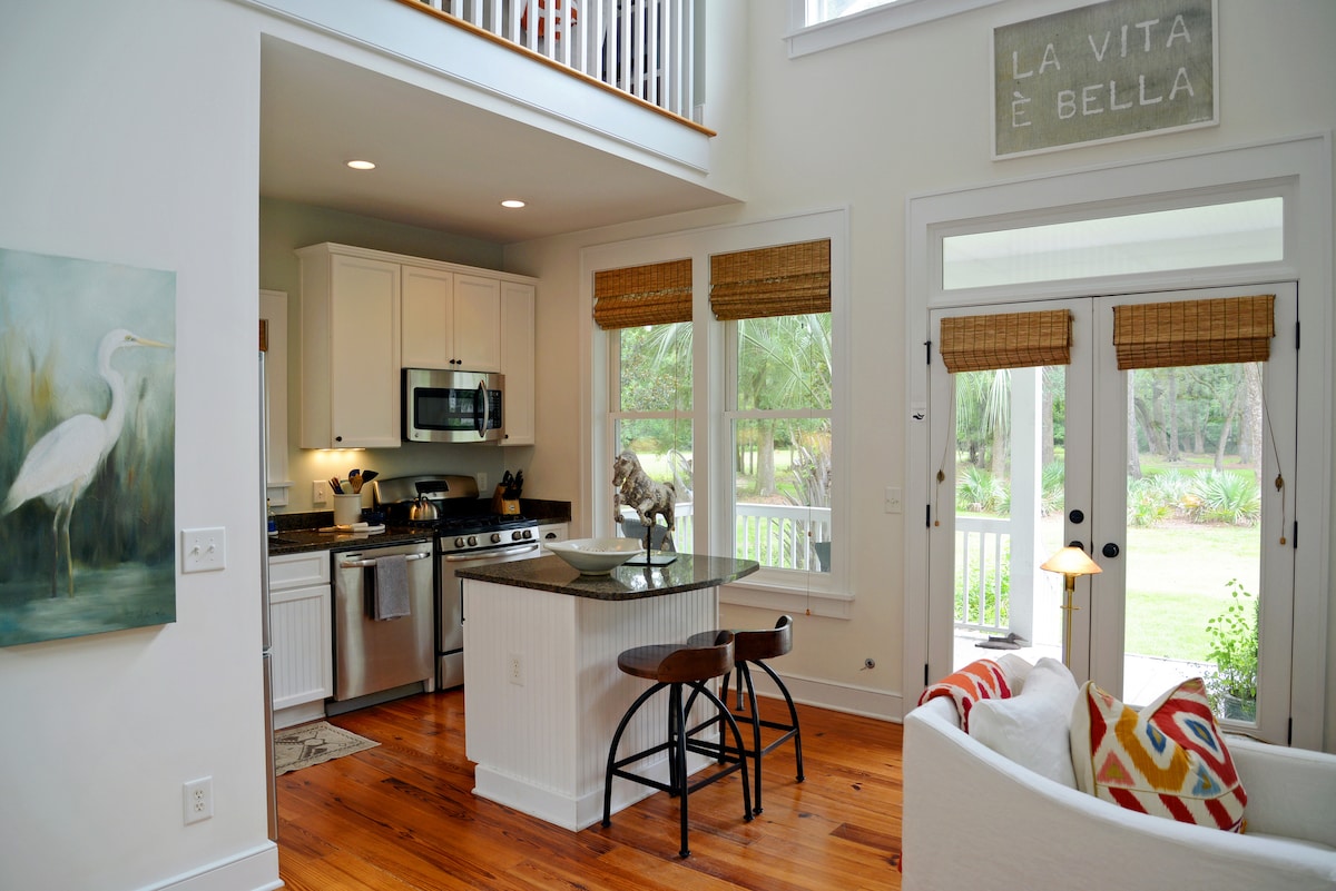 This newly built carriage house is separate from the main house. The cottage is about 1,200 sqft so it very open and spacious and great views of marsh and our tidal creek. We have a separate work area with desk and a massive dinning table if you need more room to work or to gather with friends. Full kitchen, washer and dryer, massive shower, the list goes on. You may not want to leave! Feel free to go sit and have coffee or cocktails on the dock. PERMIT# OP2025-06925